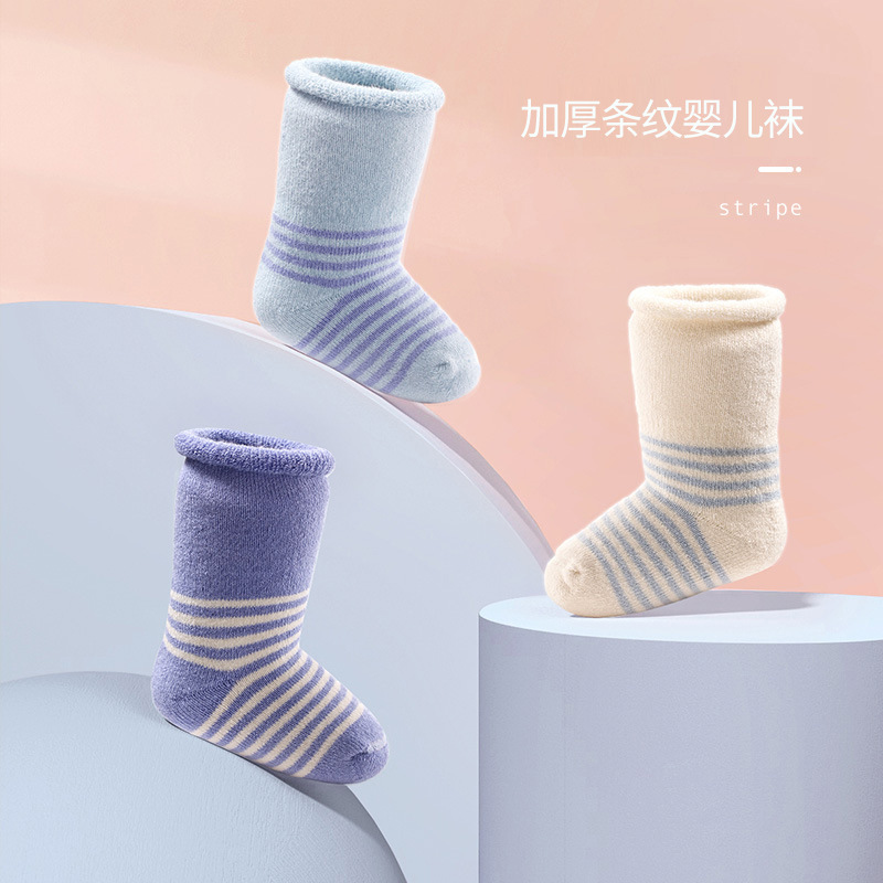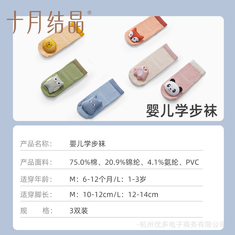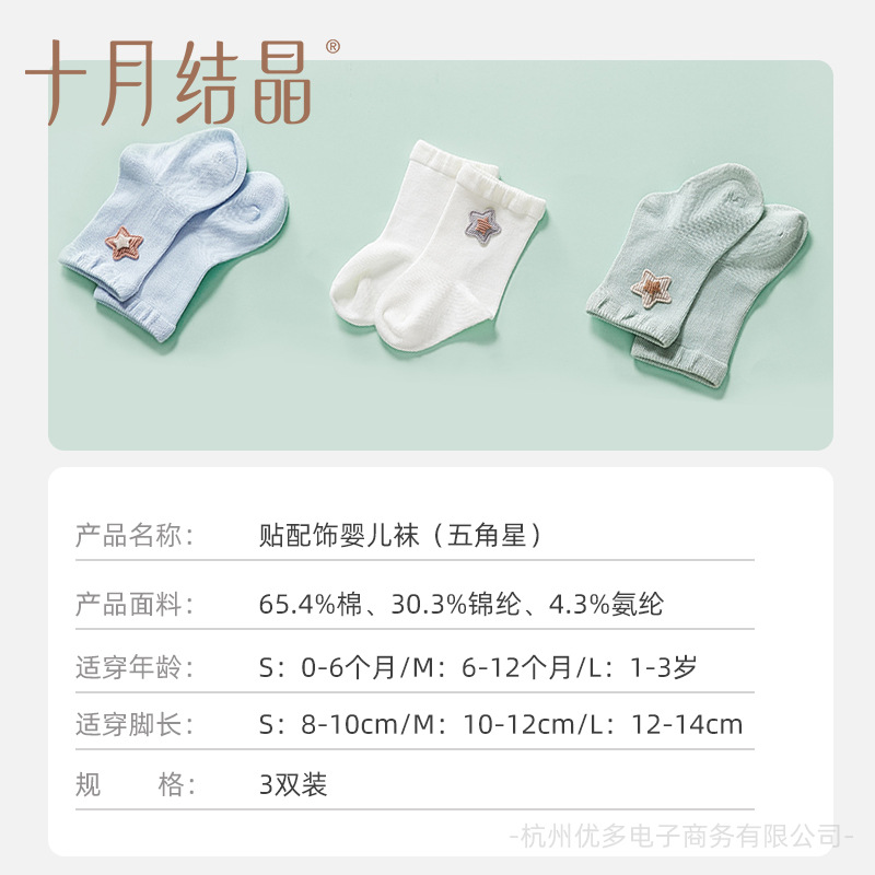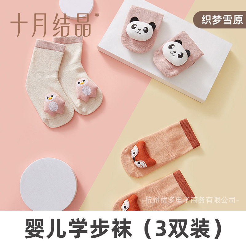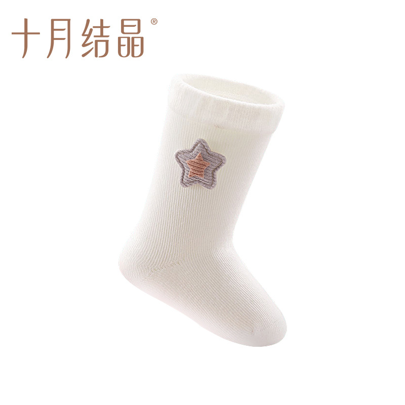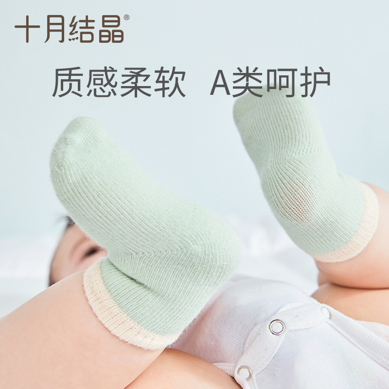 十月结晶婴儿袜子0-3岁宝宝春秋冬季棉中筒3双装儿童袜子