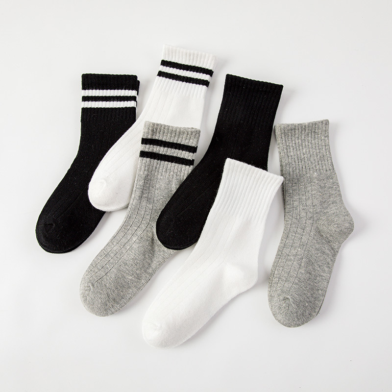 儿童袜子秋冬条纹纯色童袜白色男童女童运动学生袜儿童中筒袜