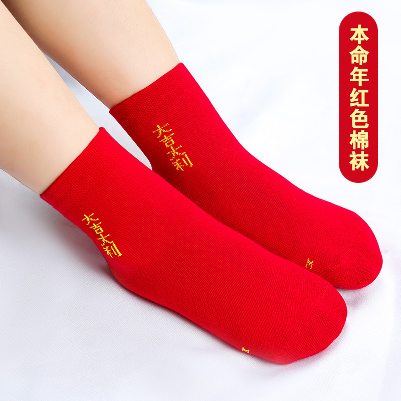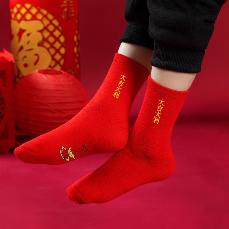 儿童本命年红色袜子新年袜蛇年1-12岁男女童袜中筒袜亲子袜秋冬