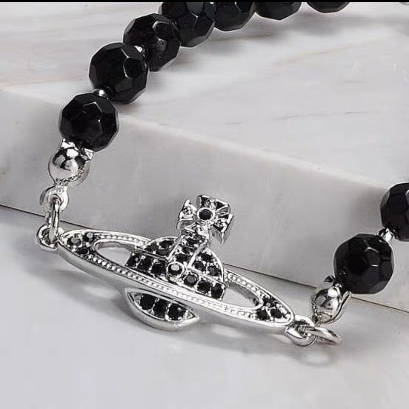 西太后土星黑玛瑙手链饰品女 Vivienne小众设计手链女生高级感