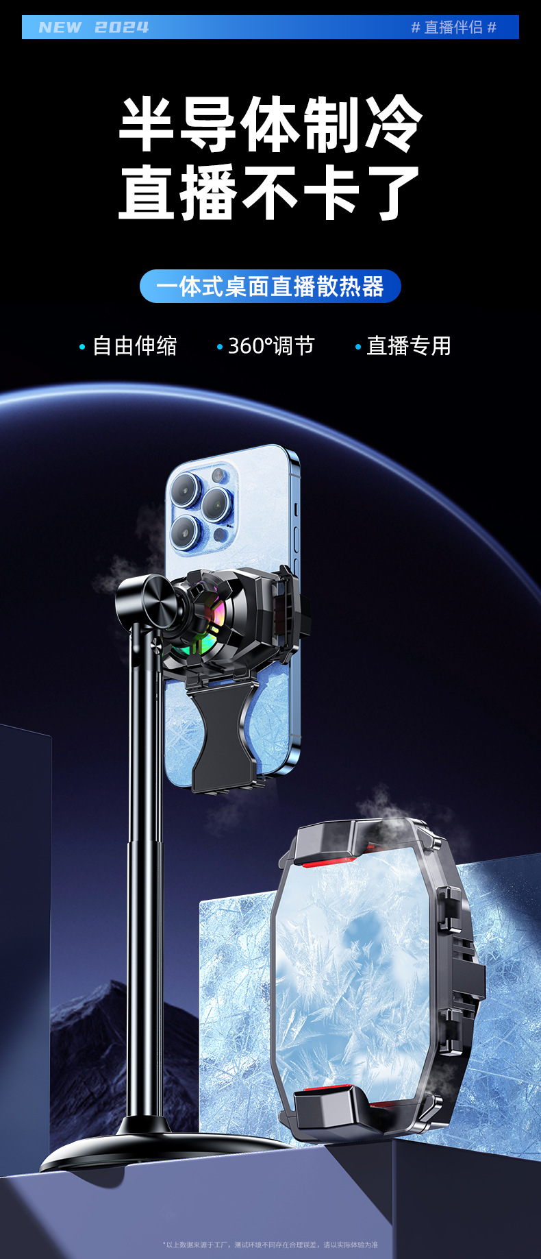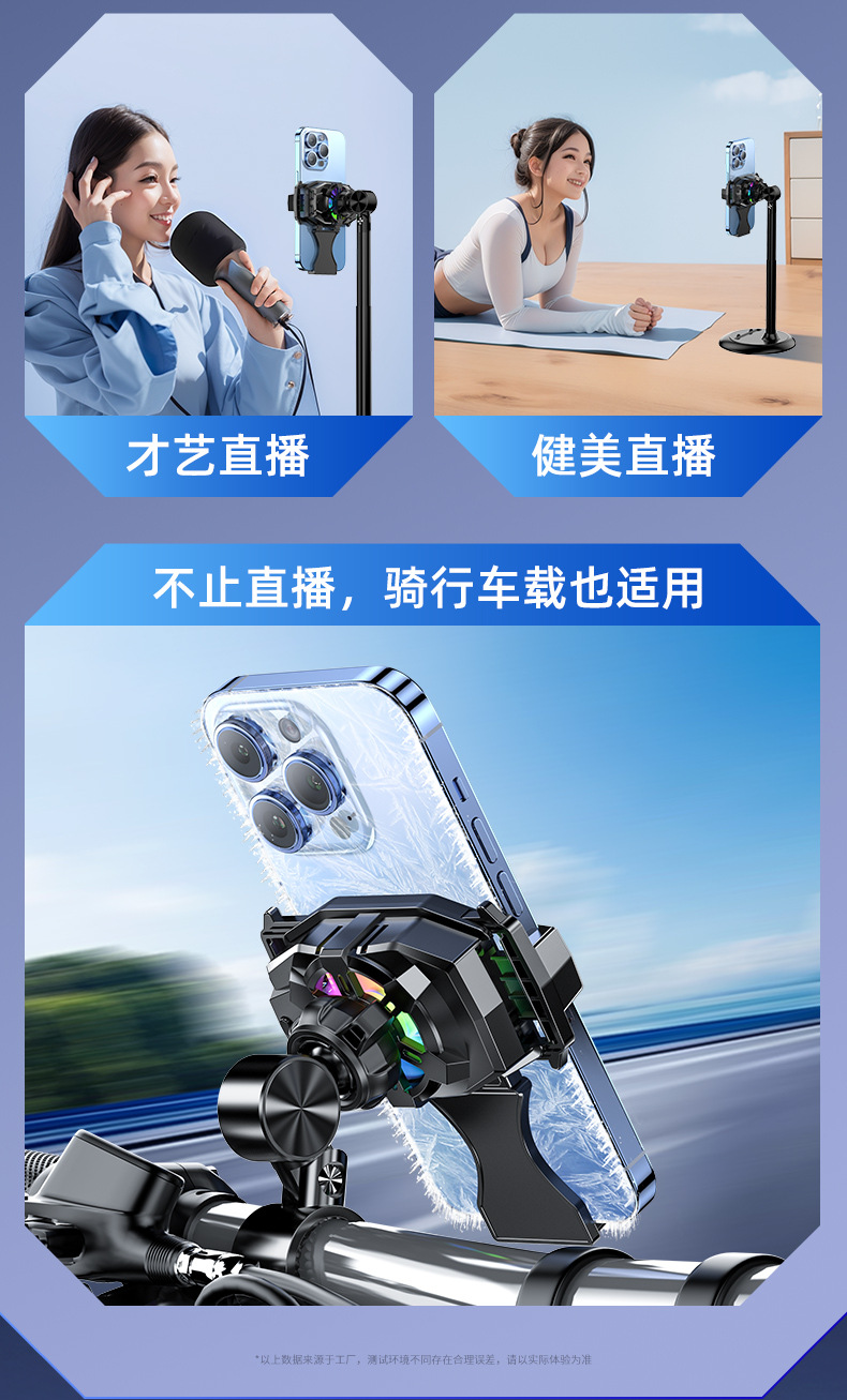 X107直播散热器【自带万向头+手机底托】+出风口支架
