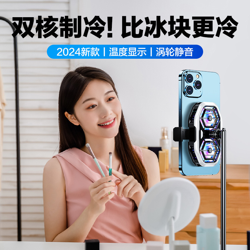 新款双风扇手机散热器直播支架温控数显半导体制冷手机背夹