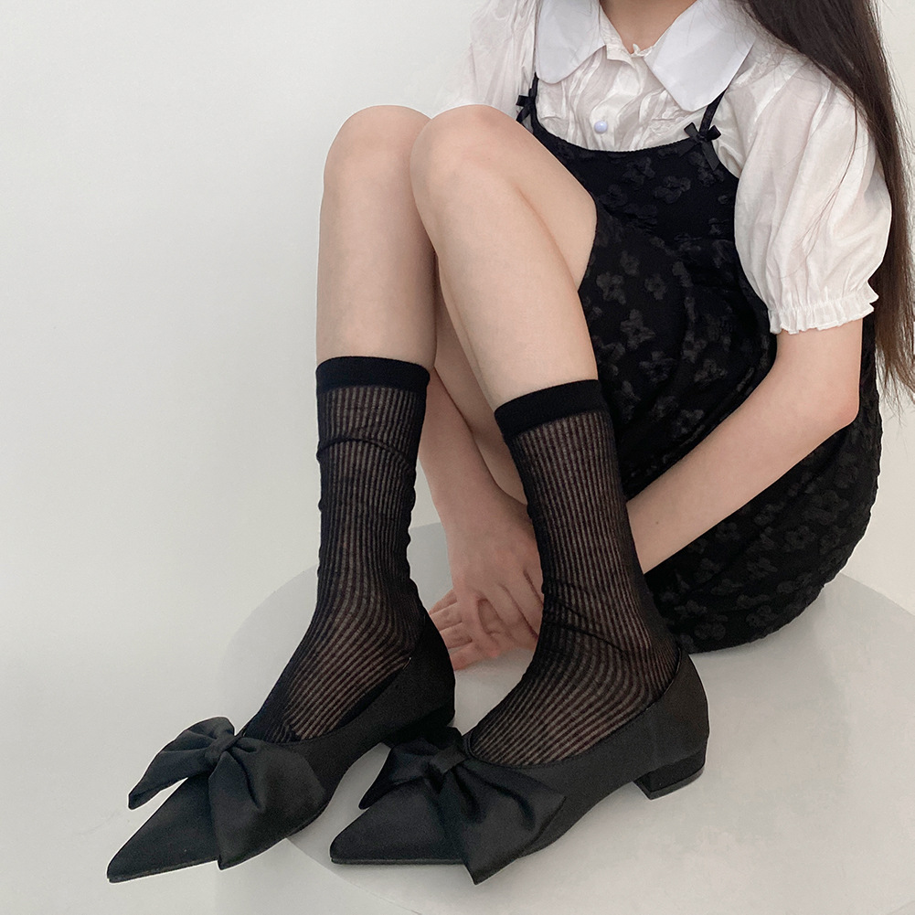 夏季新款欧货袜子女个性潮袜简约半透堆堆袜薄款立体抽条棉中筒袜