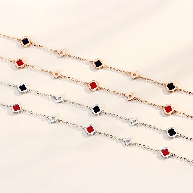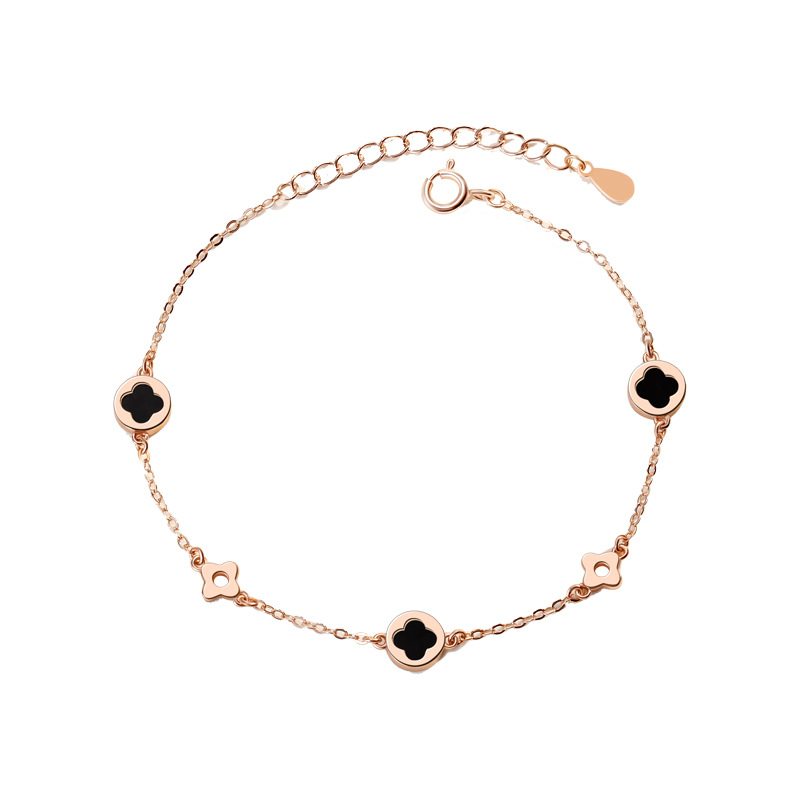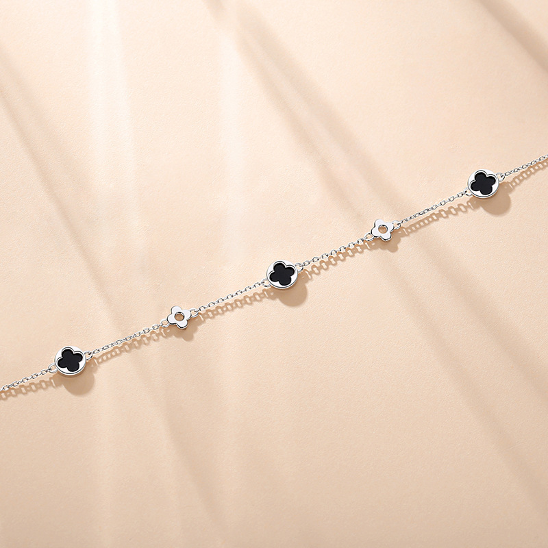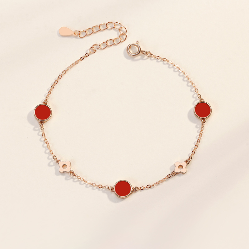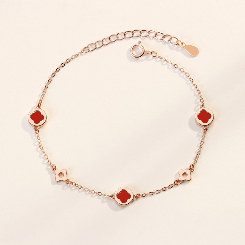 四叶草纯银手链玛瑙手饰女生高级感女士韩版手镯闺蜜简约风手串