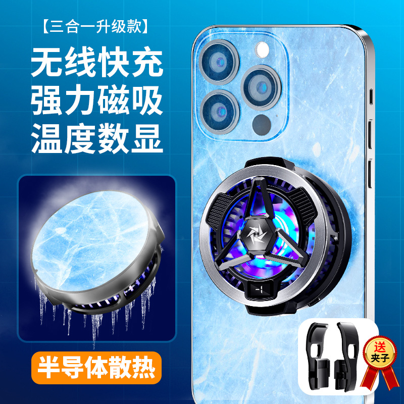新款手机散热器磁吸数显无线充电半导体冰冻散热器