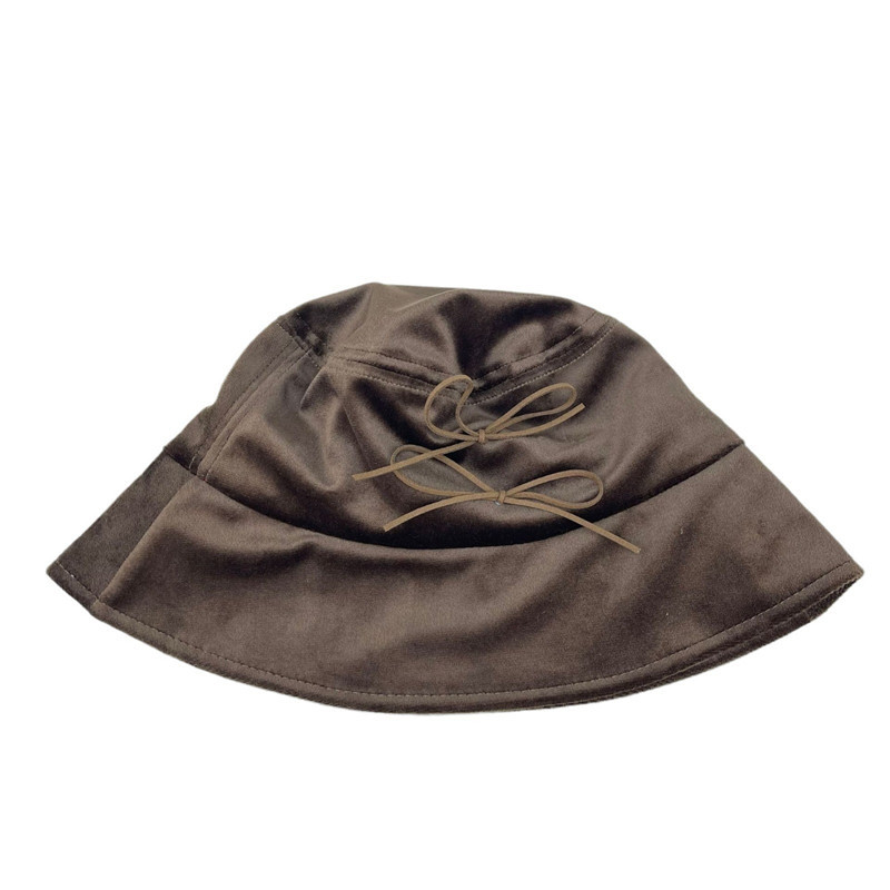 韩国小众设计师款复古天鹅绒蝴蝶结渔夫帽女春夏防晒薄款春夏盆帽