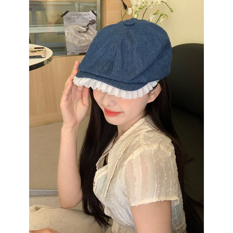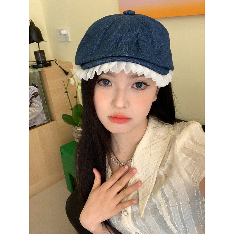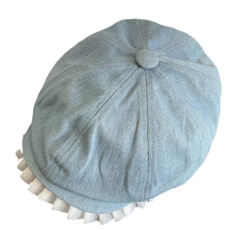韩版复古艺术牛仔前进帽女英伦风百搭大头围画家帽显脸小报童帽子