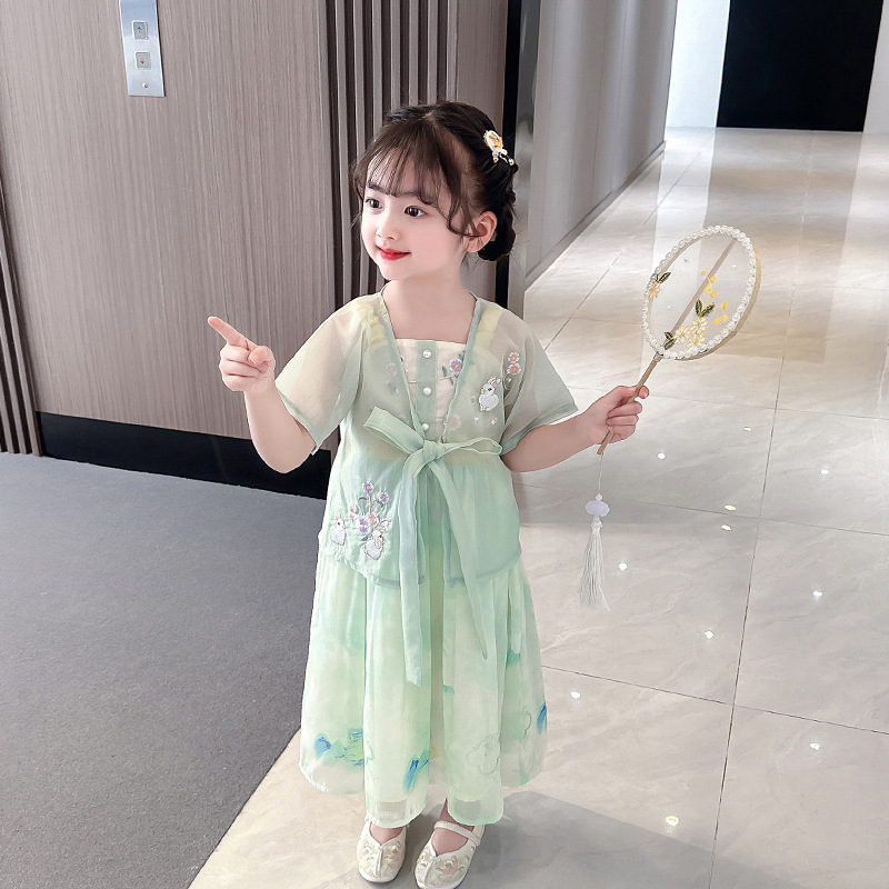 小女孩青山汉服两件套唐装夏季新品古风超仙小清新
