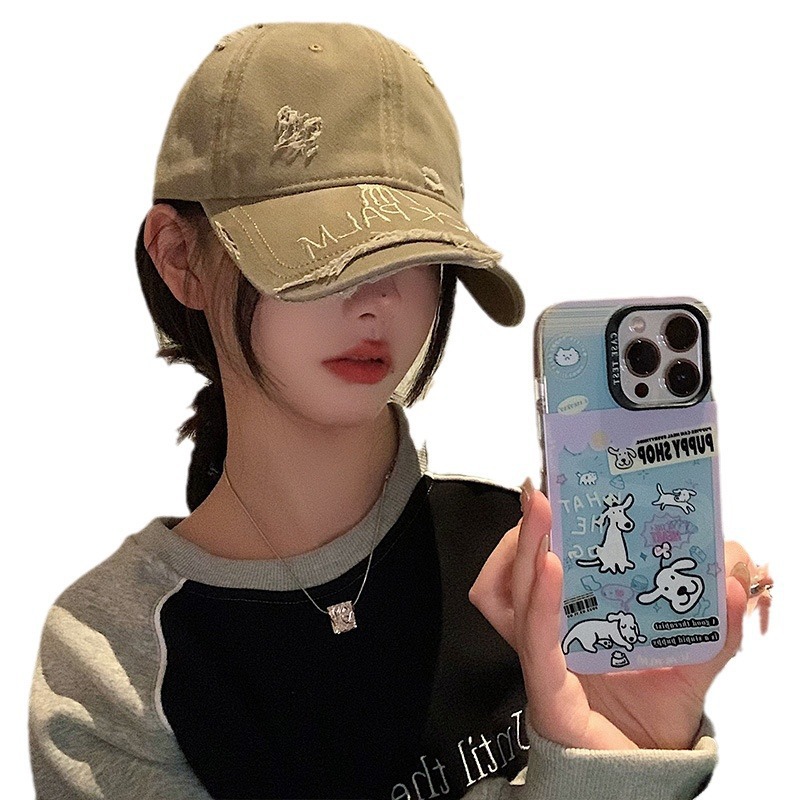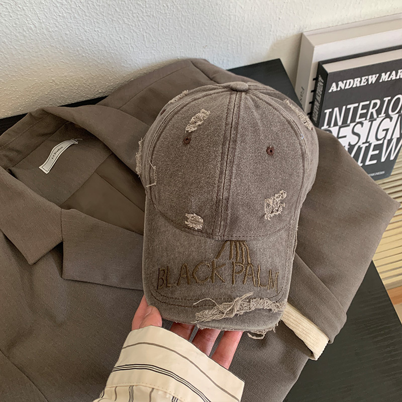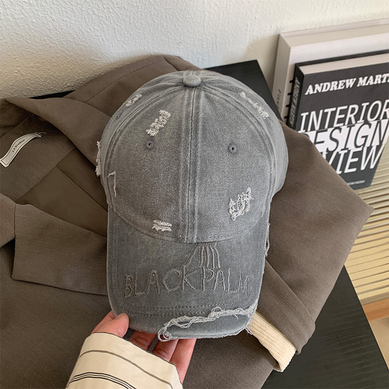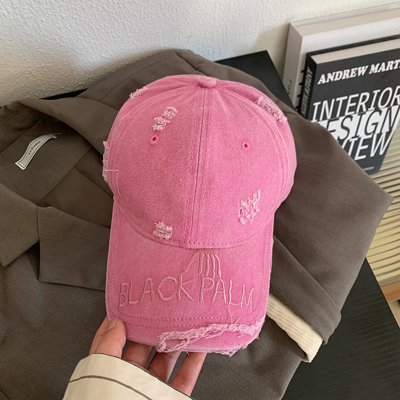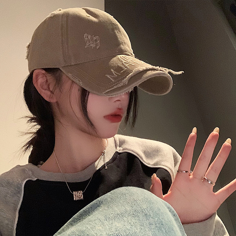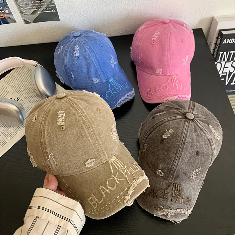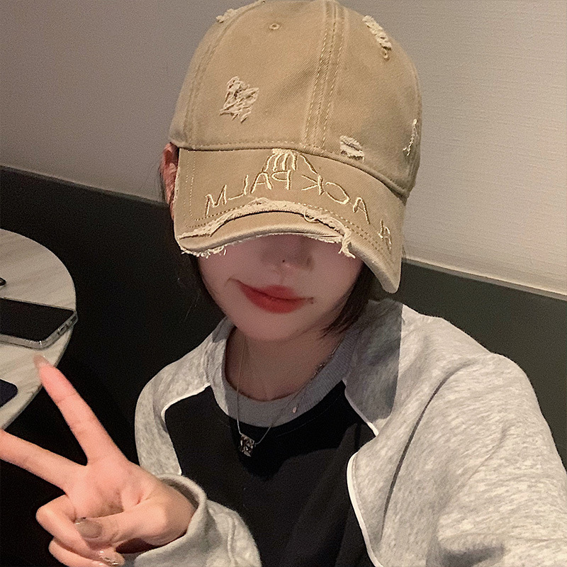 做旧加大加深破洞棒球帽女日系百搭宽帽檐显脸小鸭舌帽大头围帽子