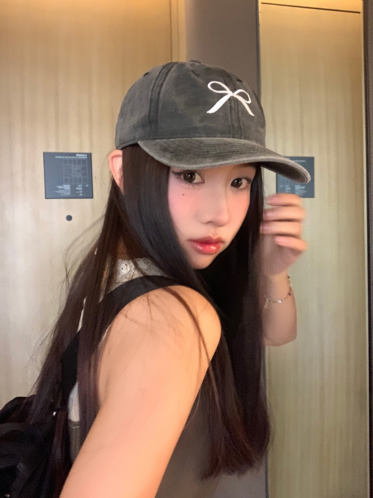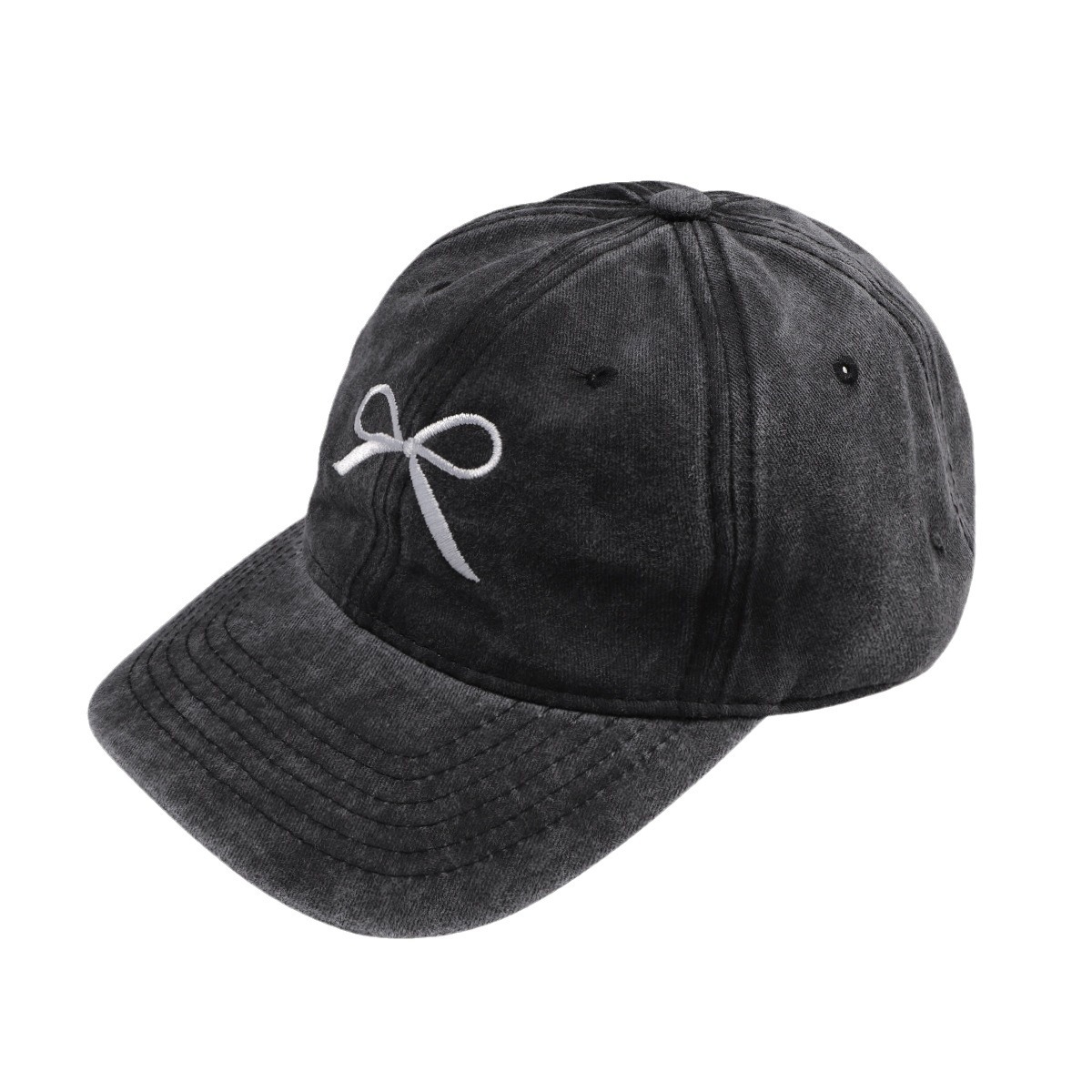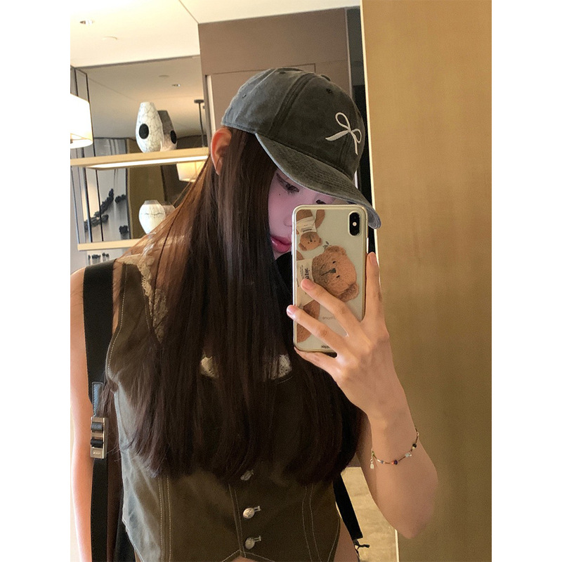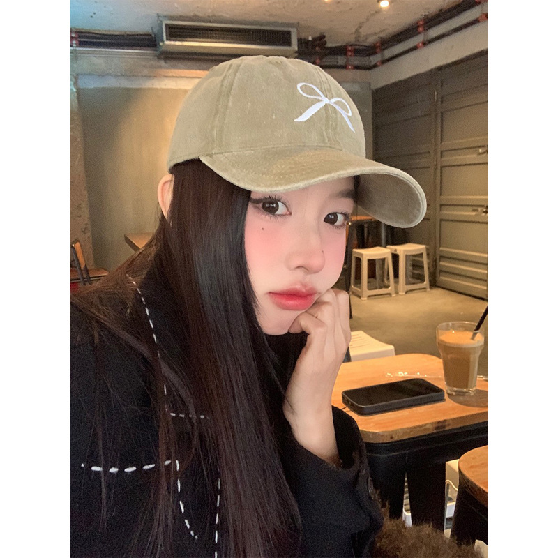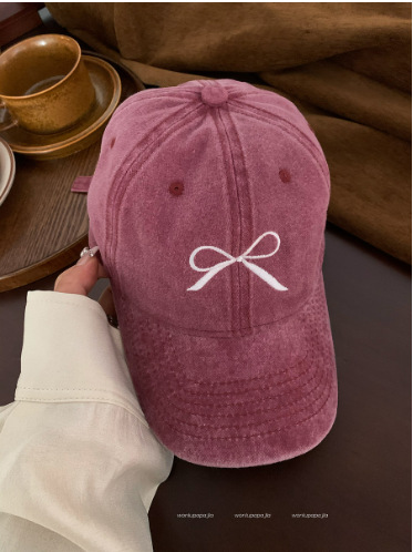ins韩国蝴蝶结遮阳棒球帽复古做旧短檐休闲时尚百搭防晒鸭舌帽女