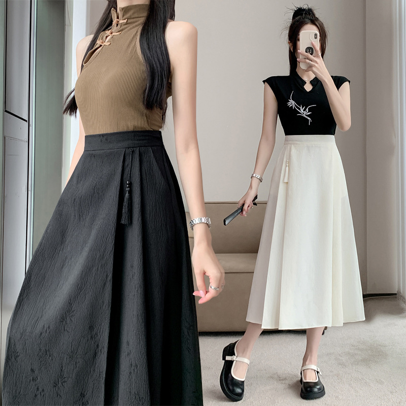 新中式提花马面裙半身裙女春夏新款显瘦休闲国风百褶裙伞裙女