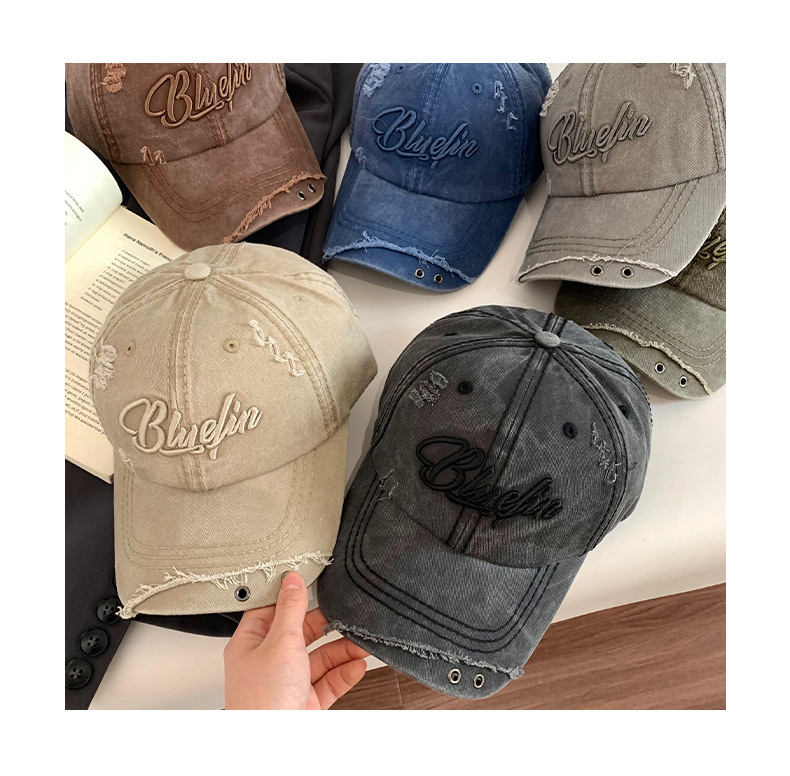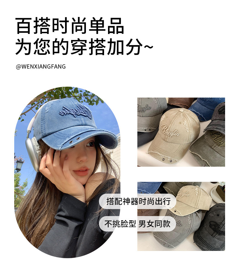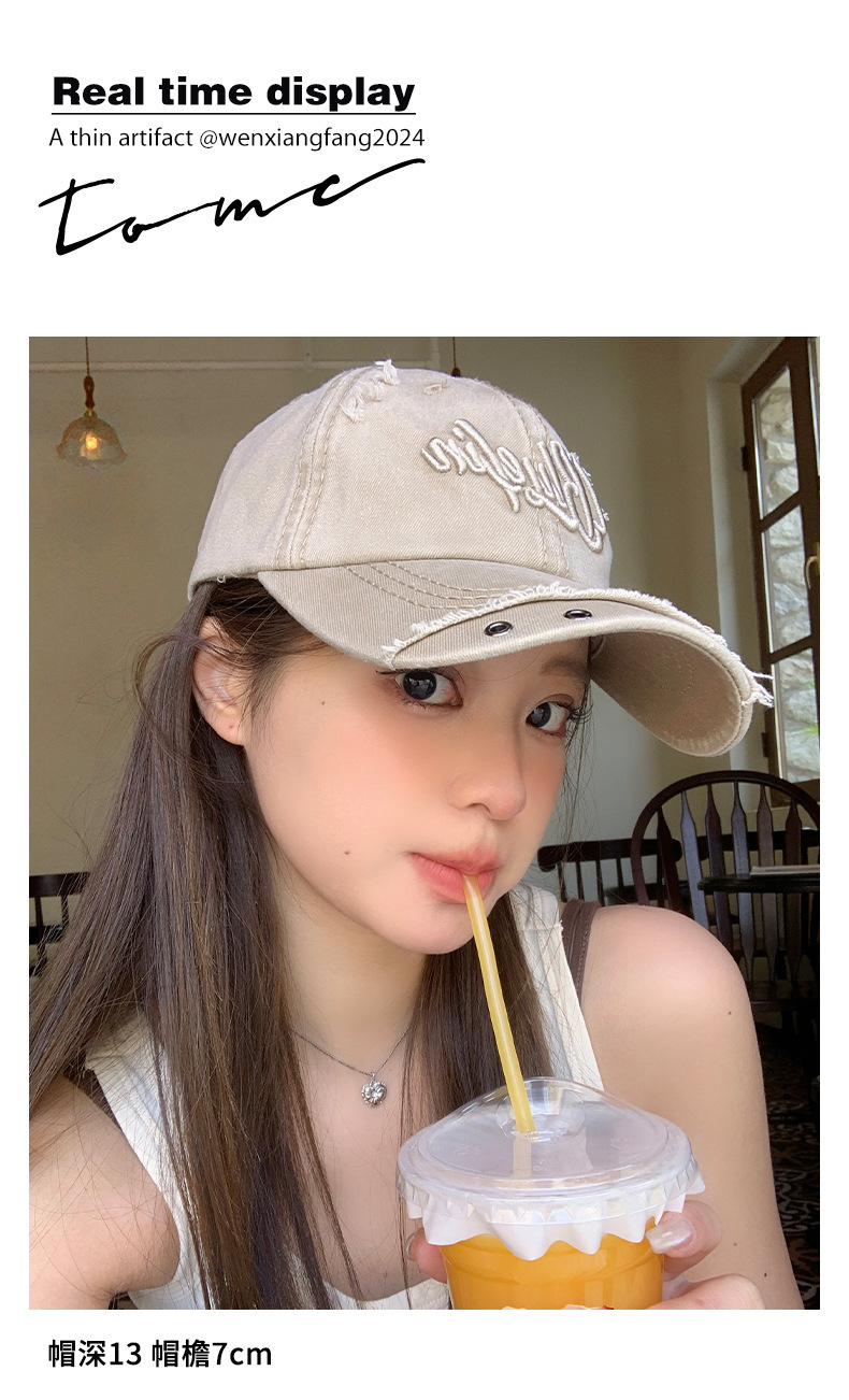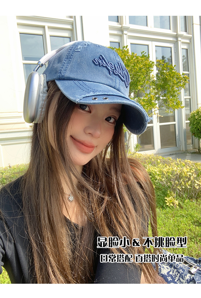 破洞大头围显脸小鸭舌帽美式复古牛仔棒球帽女宽帽檐百搭时尚帽子