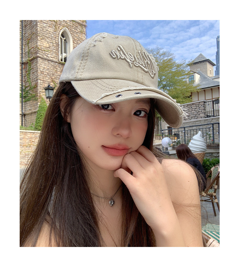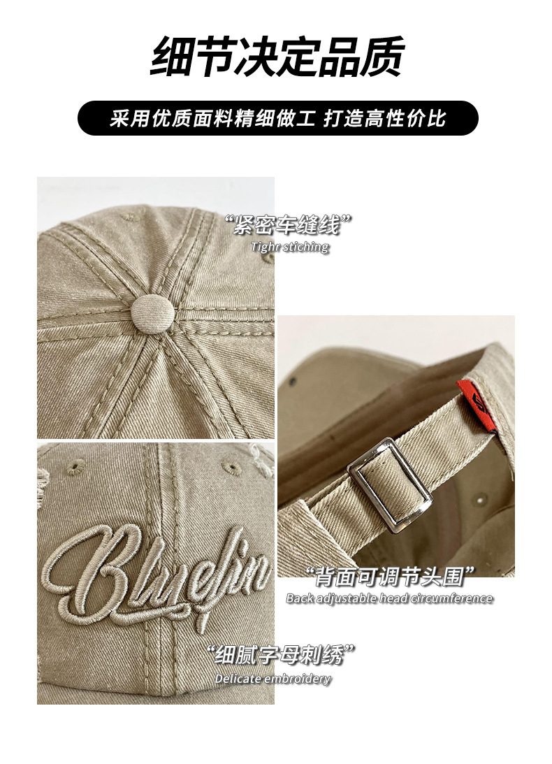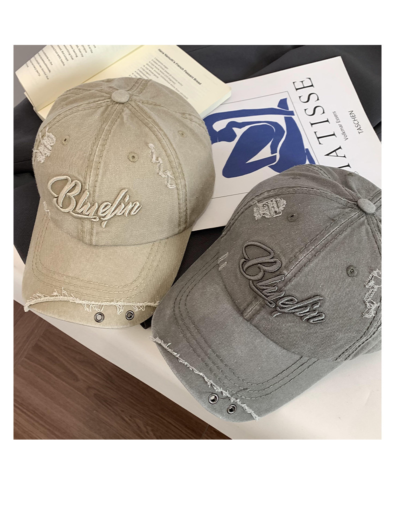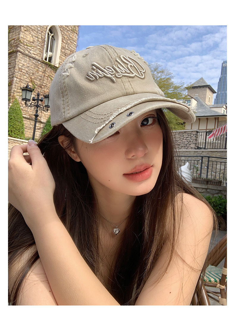 破洞大头围显脸小鸭舌帽美式复古牛仔棒球帽女宽帽檐百搭时尚帽子