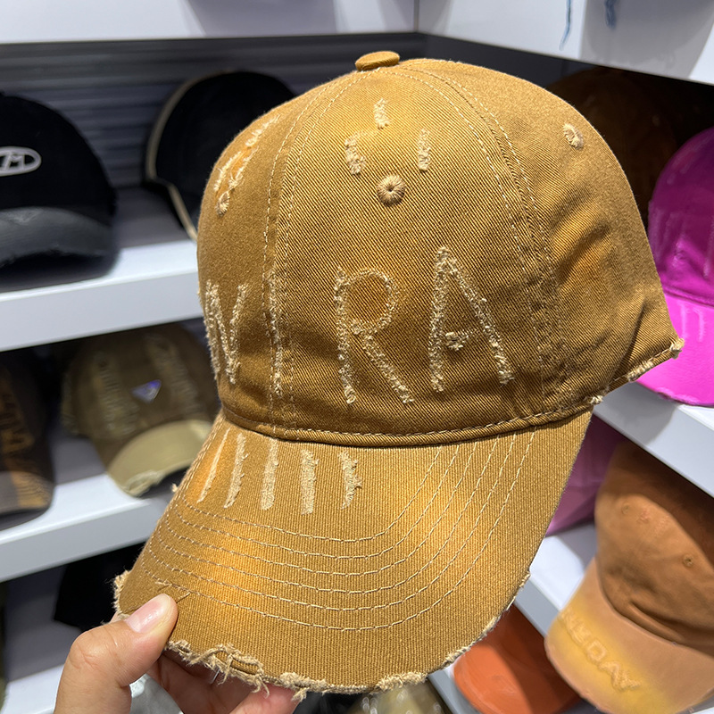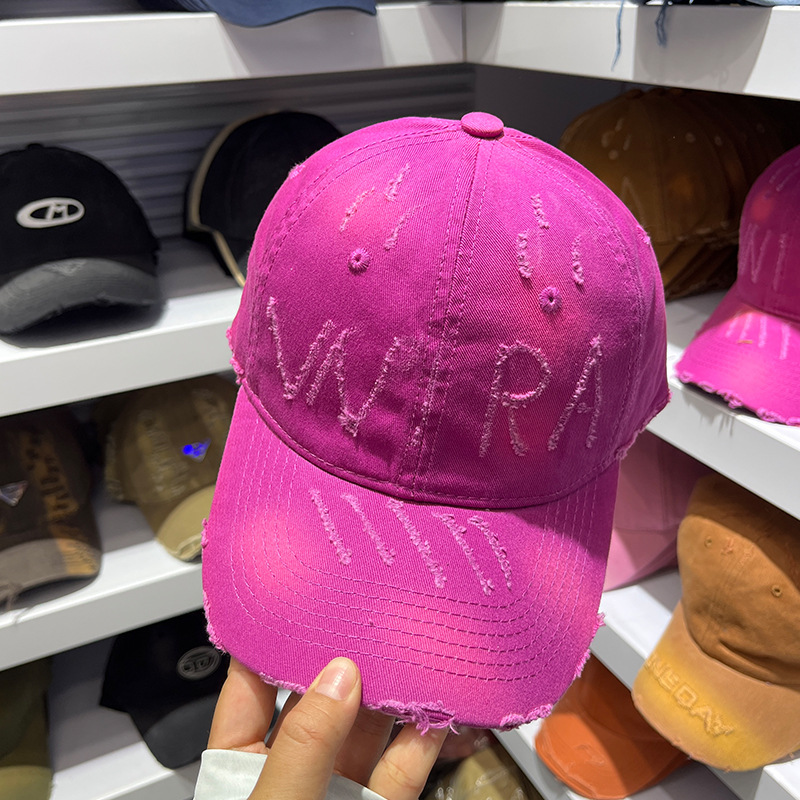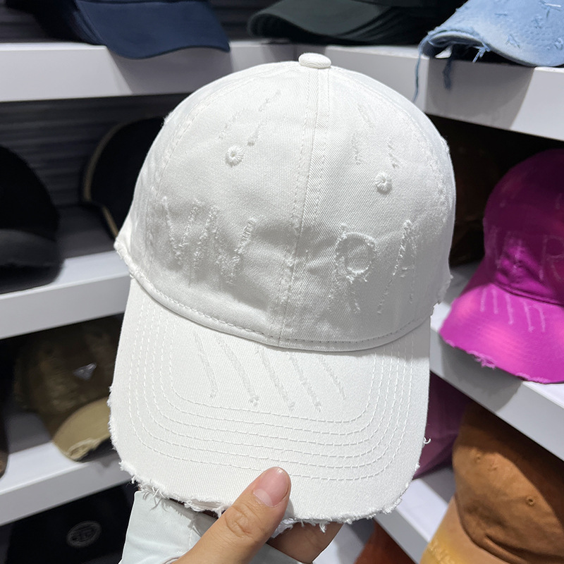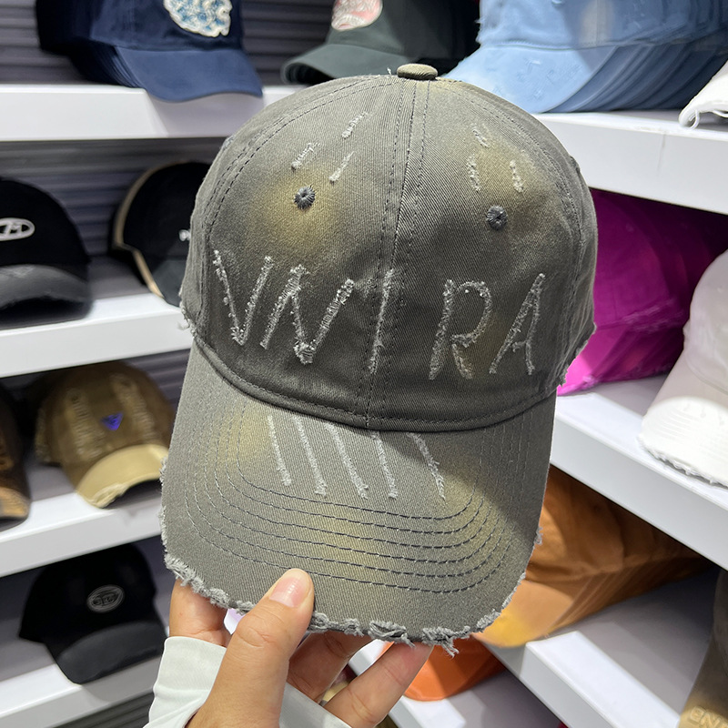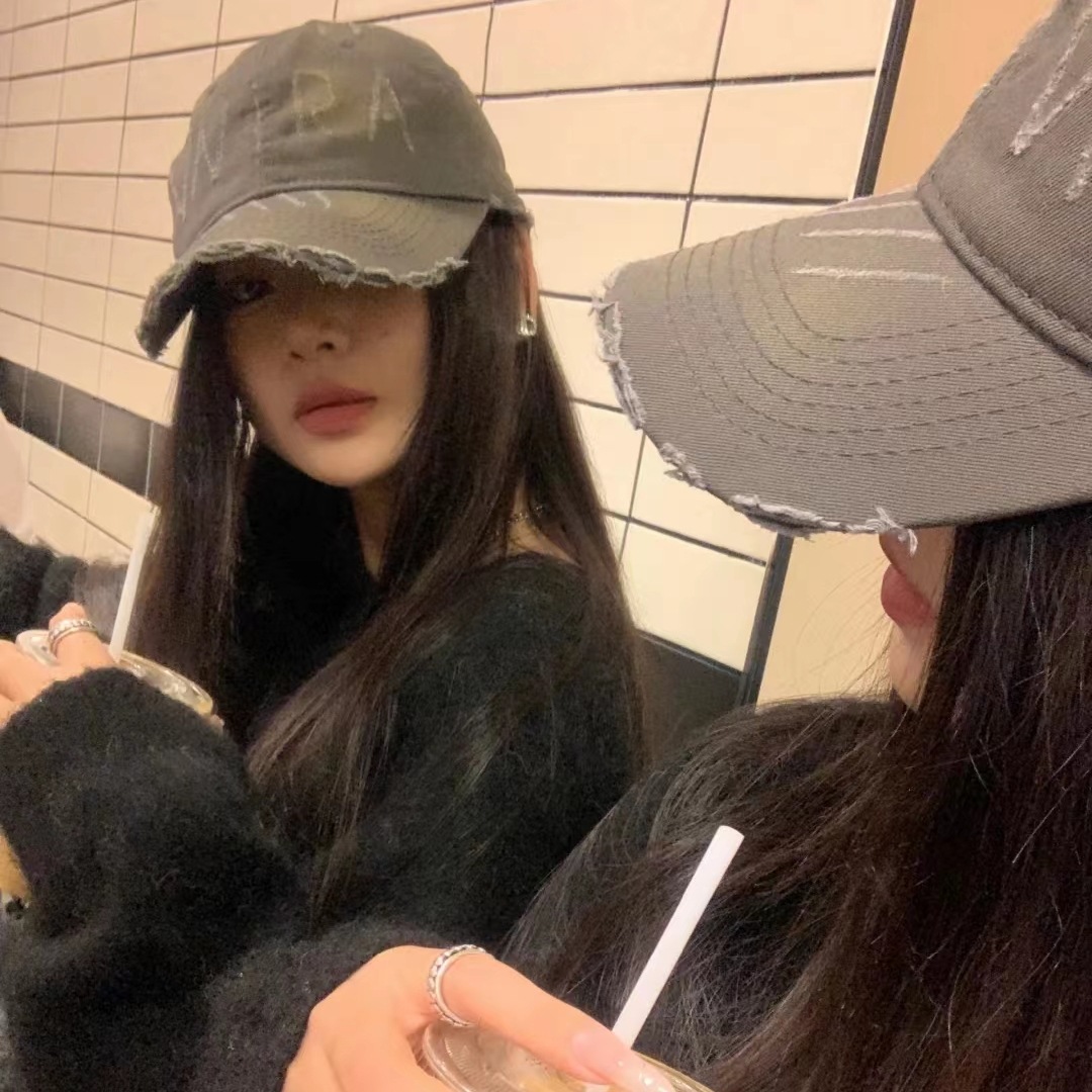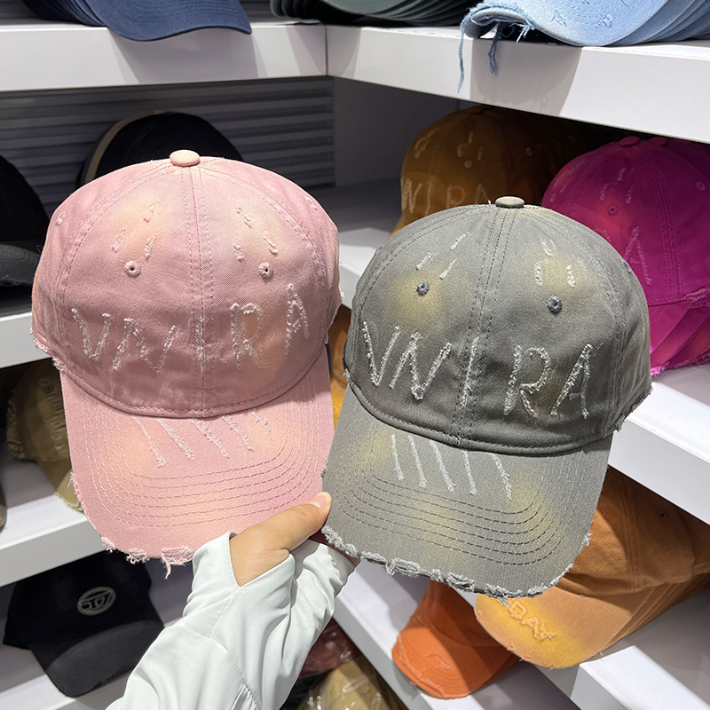 手工磨毛做旧破洞晕染鸭舌帽子女春夏秋季百搭显脸小棒球帽男情侣