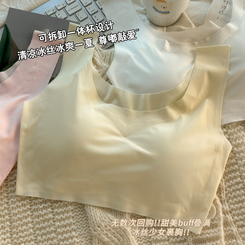 无痕冰丝内衣女少女吊带运动无钢圈文胸学生聚拢抹胸显嫩气质背心