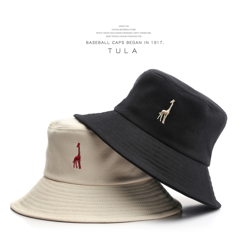 渔夫帽户外运动出行防晒遮阳太阳帽韩版日系长颈鹿刺绣情侣盆帽