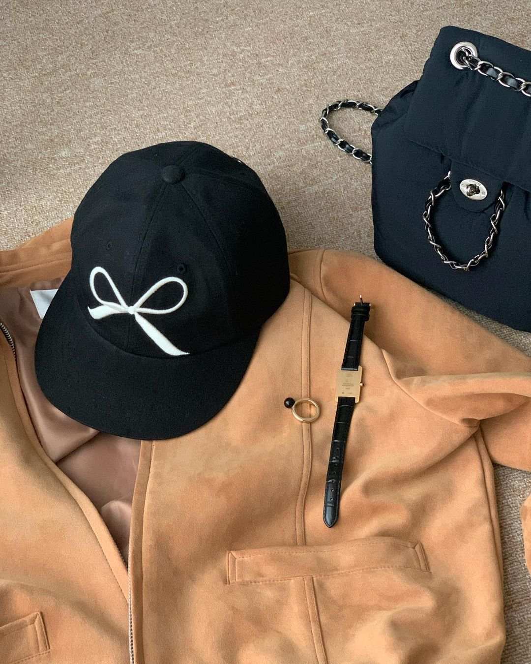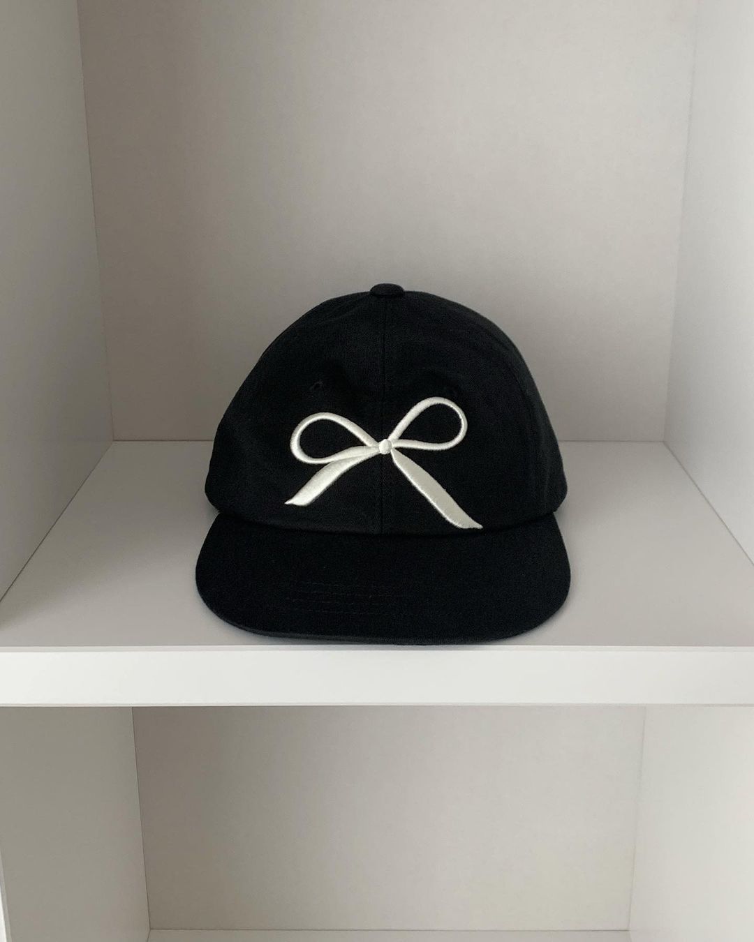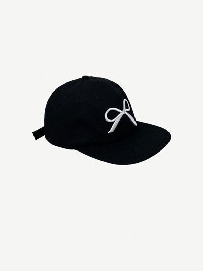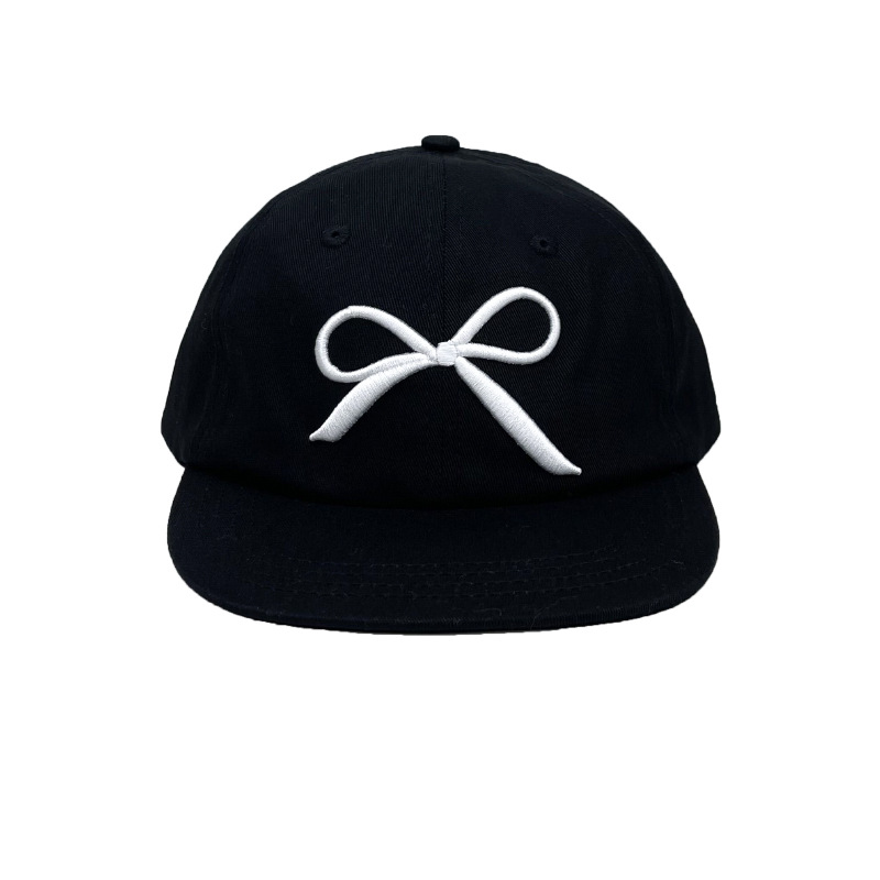 韩国小众设计师蝴蝶结刺绣图案黑色棒球帽女平帽檐鸭舌帽男潮