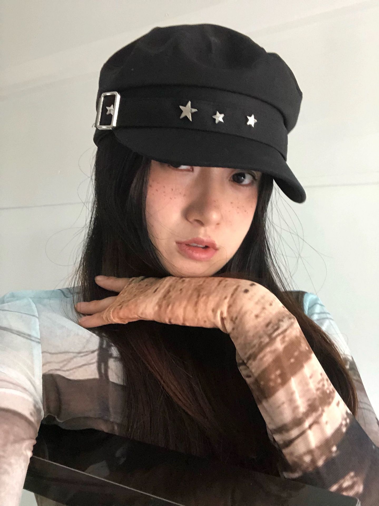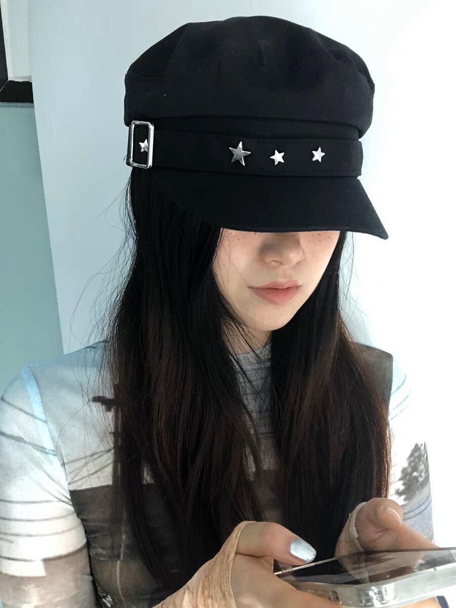 复古小众星星元素海军帽女日系y2k辣妹显脸小八角帽画家贝雷帽潮