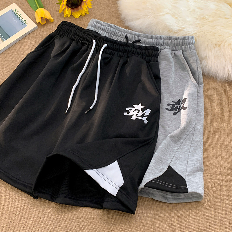 运动短裤男夏季高街bf潮牌宽松五分裤个性帅气拼色抽绳直筒中裤子