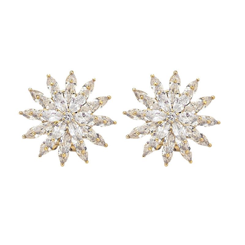 铜镀14K金微镶锆石高档奢华三层可旋转花朵耳钉创意耳环耳饰品