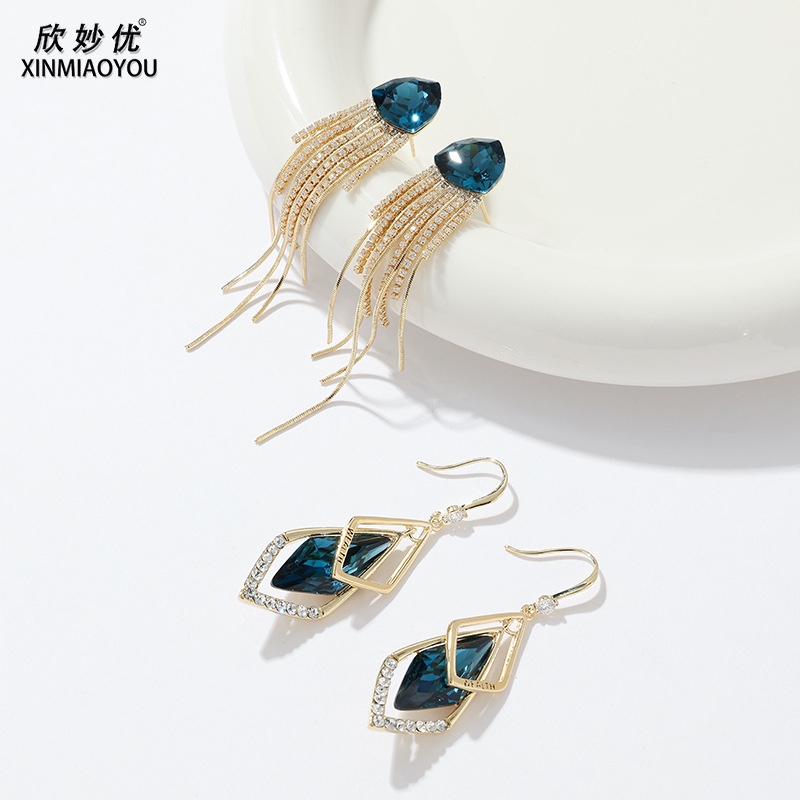 复古高级几何水晶时尚菱形耳环铜微镶锆石耳坠爆款新款百搭耳饰品