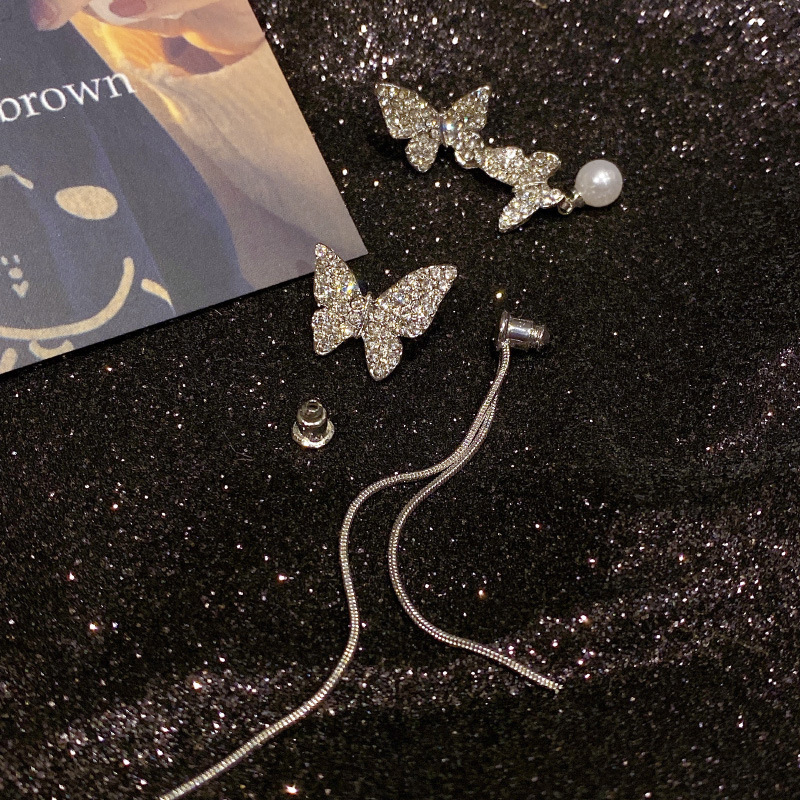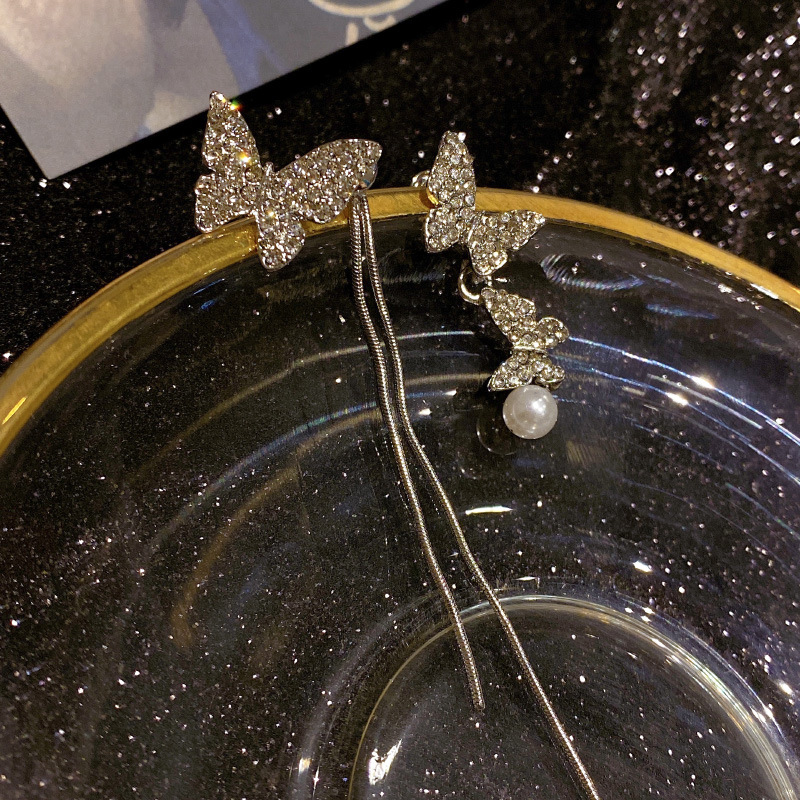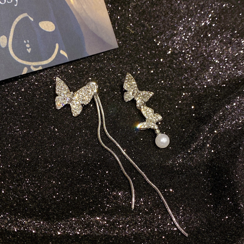 新款潮流苏耳饰女长款珍珠蝴蝶耳环简约百搭气质款耳饰品