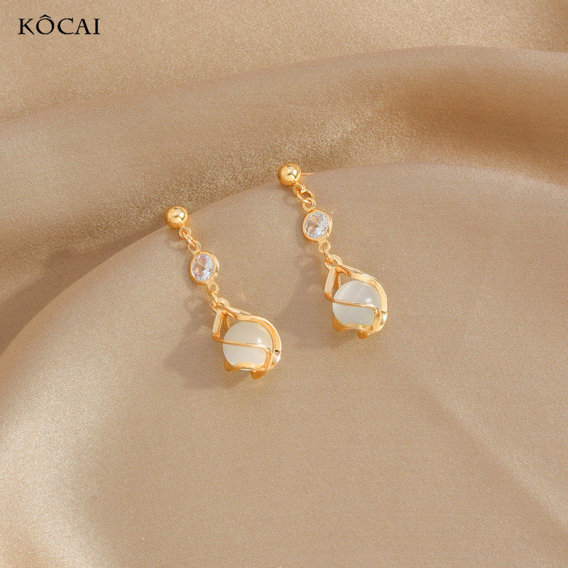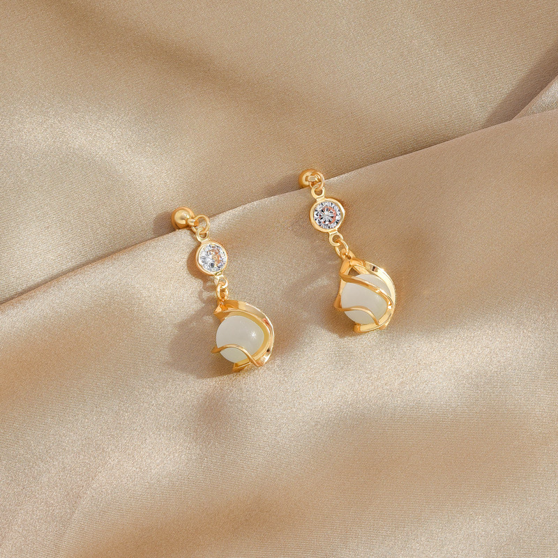新款潮高级感猫眼石耳扣耳饰小众设计大气网红时尚百搭耳环