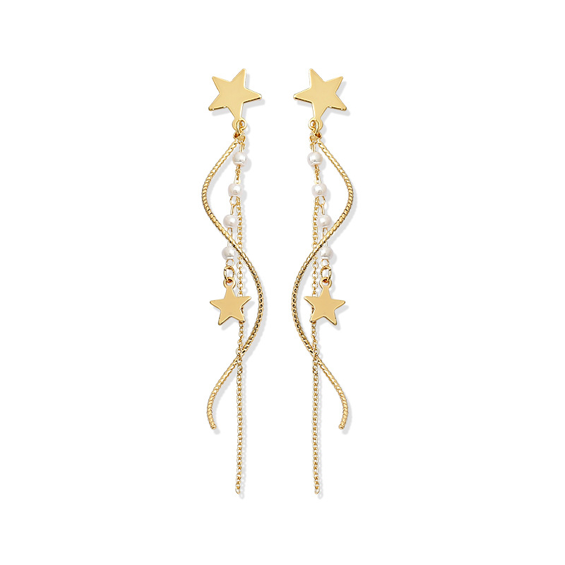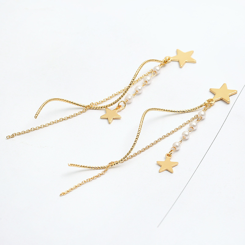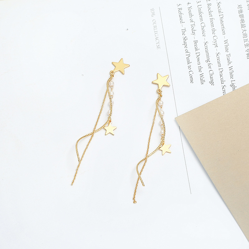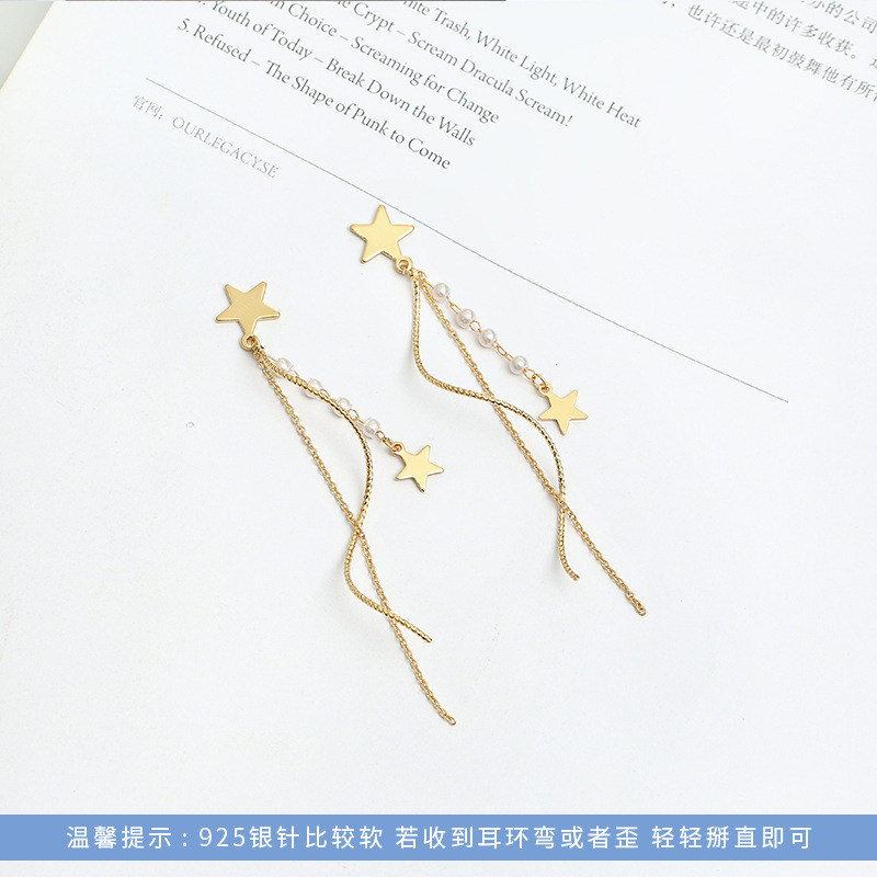 新款五角星流苏耳钉韩国长款珍珠耳环高级感耳坠女简约网红耳饰品