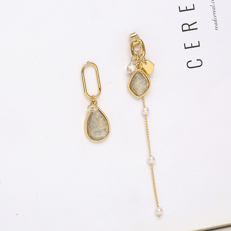 不对称水滴流苏珍珠圆圈欧美时尚夸张长款耳坠韩国个性耳钉耳环女