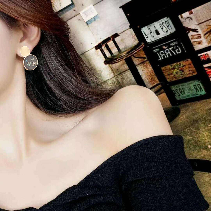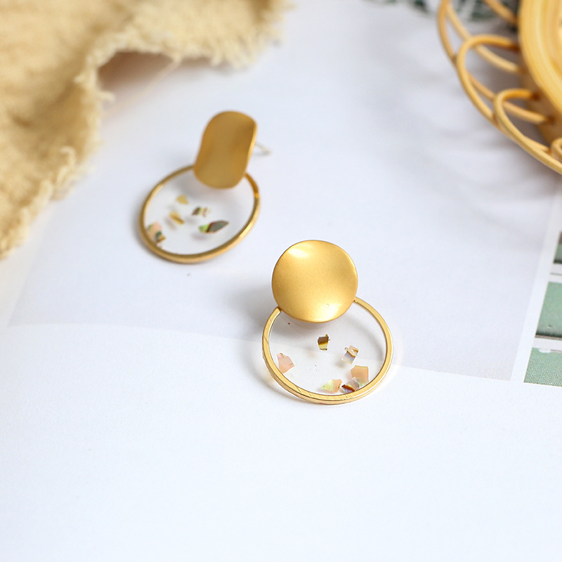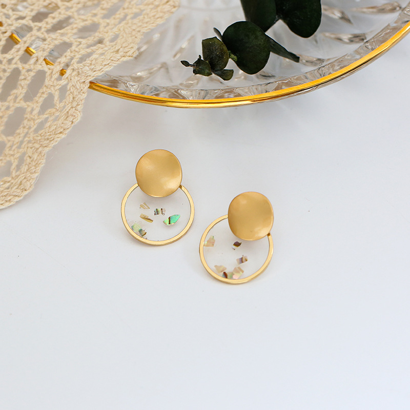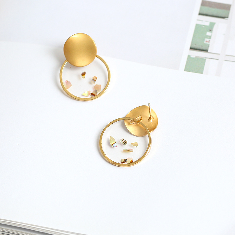 s925银针耳环女简约几何圆形圆片耳钉耳坠韩国东大门耳饰品