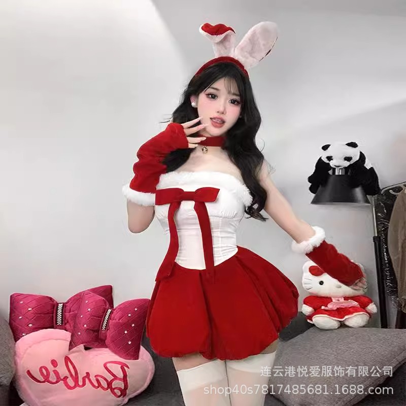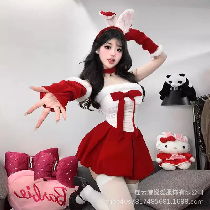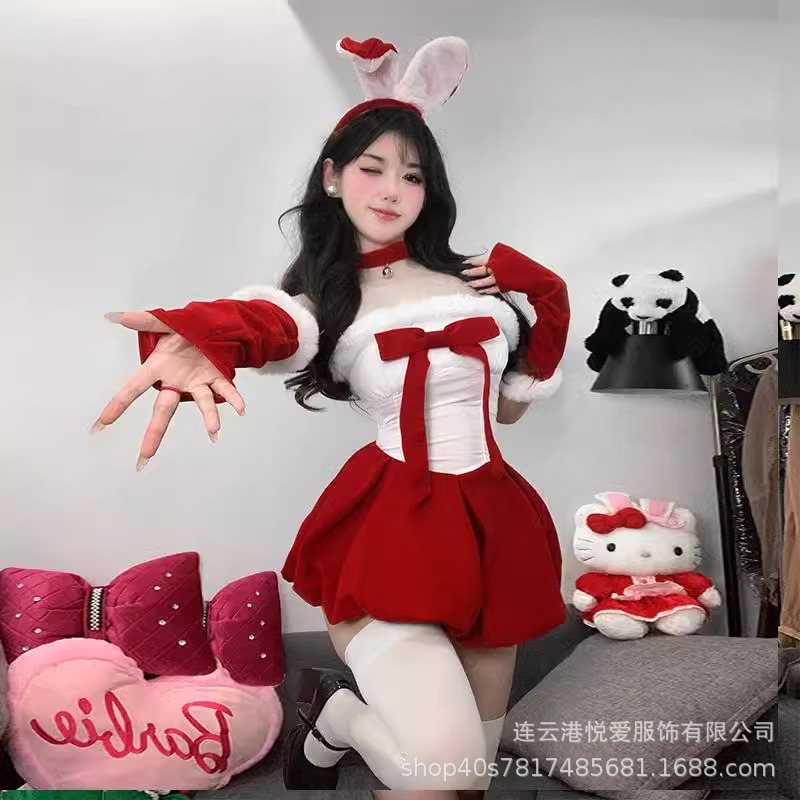 纯欲圣诞情人节限定兔女郎性感制服连衣裙套装女