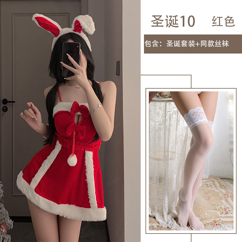 圣诞节cos制服情趣性感内衣丝绒睡衣女角色扮演约会战袍套装