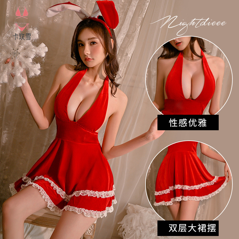 情趣圣诞装内衣绯色挂脖深V性感女制服