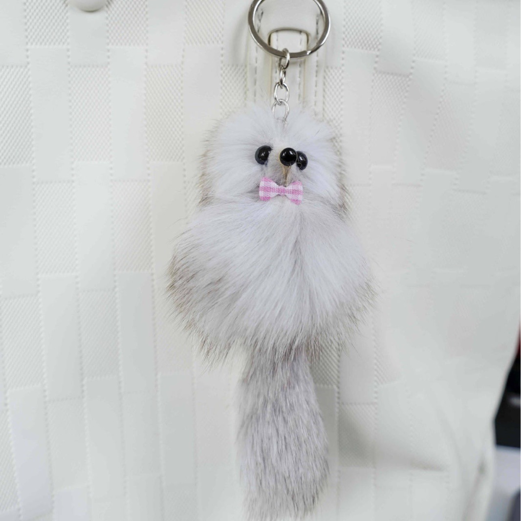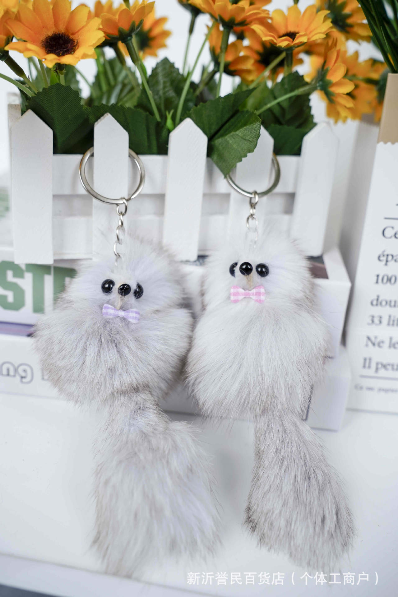可爱小狐狸钥匙扣 真毛挂件 包包挂饰 汽车狐狸毛摆件小饰品