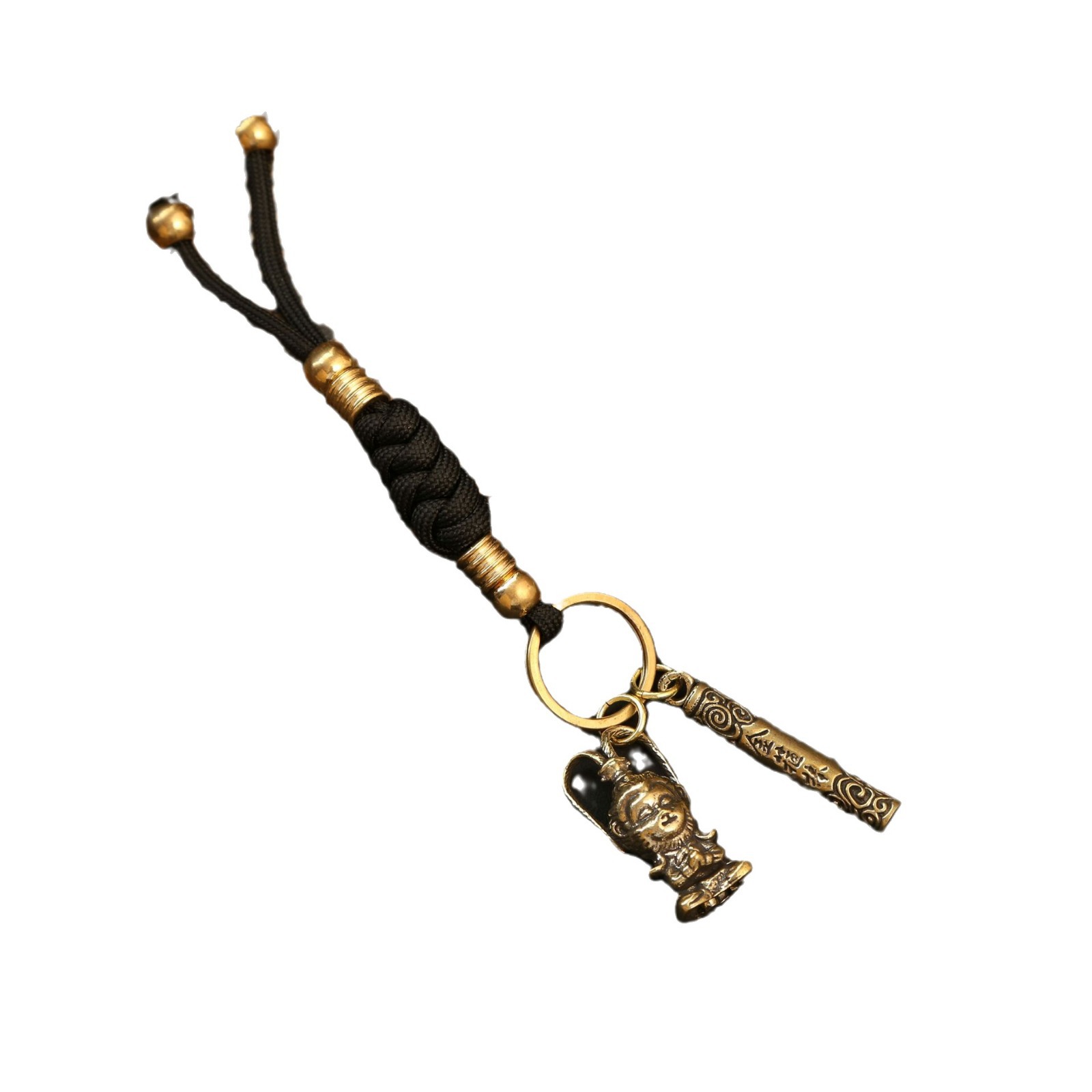 黄铜斗战圣佛悟空汽车钥匙扣挂件唐草环复古做旧工艺品男女包挂坠
