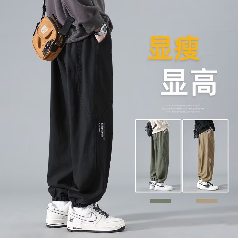 美式高街痞帅纯棉工装裤男款春秋季束脚潮牌大码男士运动休闲长裤