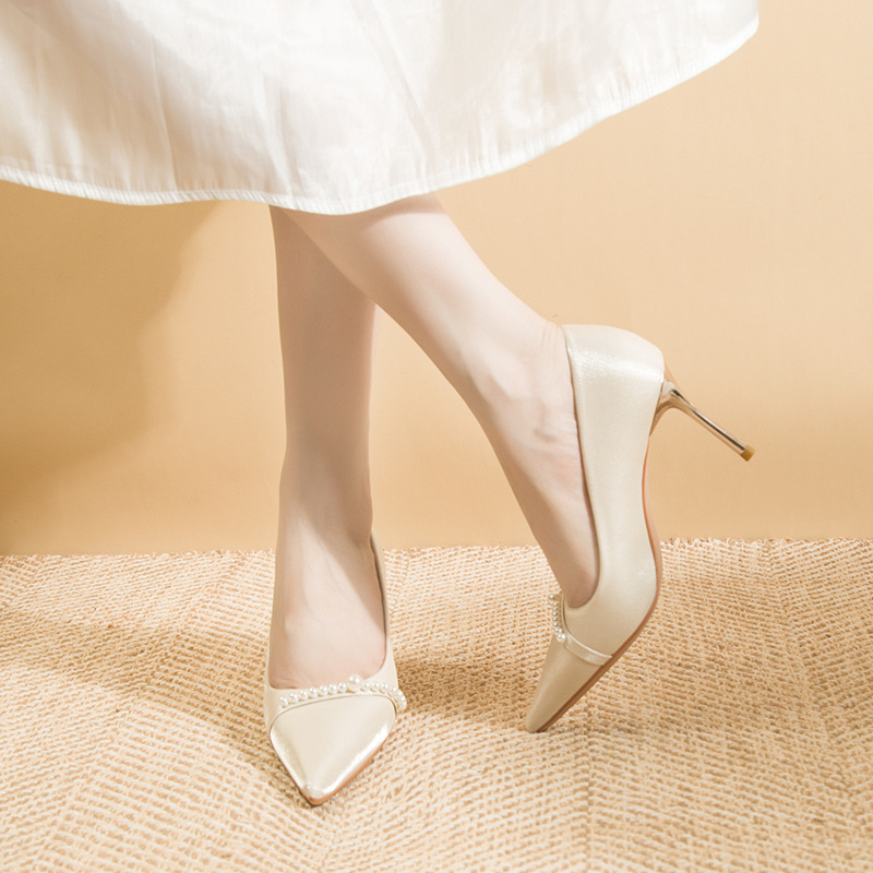 年新款法式婚鞋新娘鞋女小众单鞋气质珍珠高跟鞋伴娘鞋