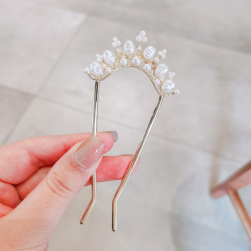 古风珍珠花朵发簪女U型后脑勺盘发簪子新款新中式气质发钗