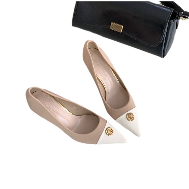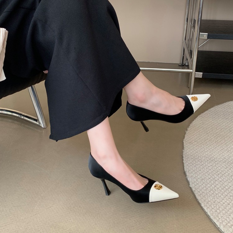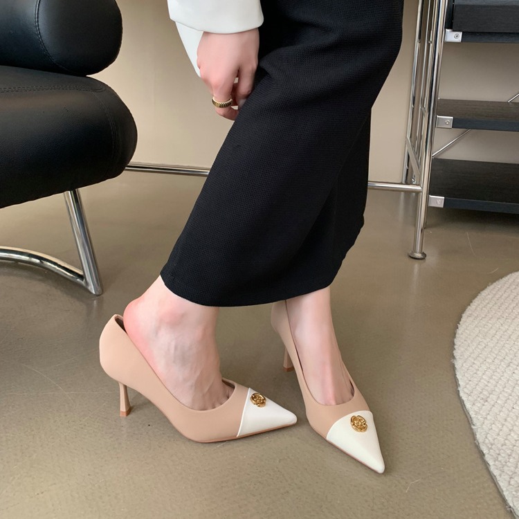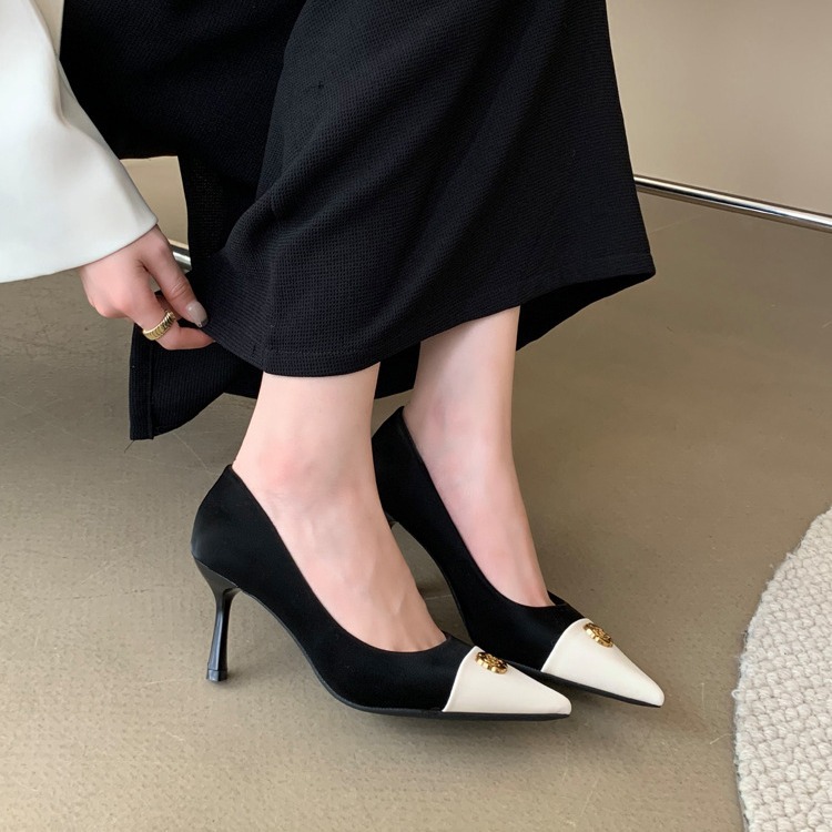 法式晚晚配裙子尖头高跟鞋仙女风细跟单鞋年春夏温柔风单鞋