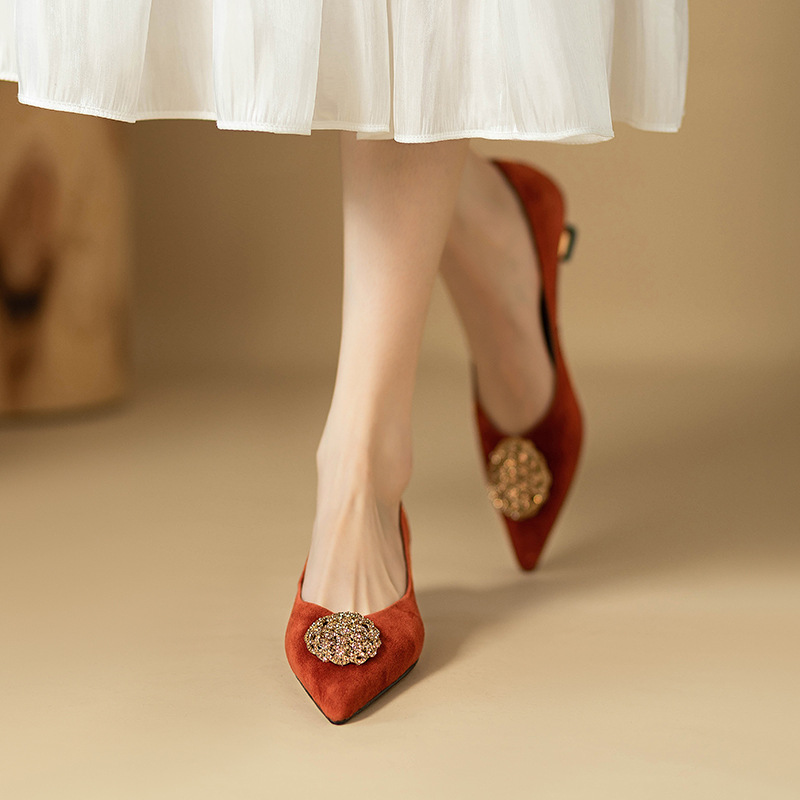 法式黑色高跟鞋女细跟不累脚工作鞋职业新款软皮通勤绒面尖头单鞋