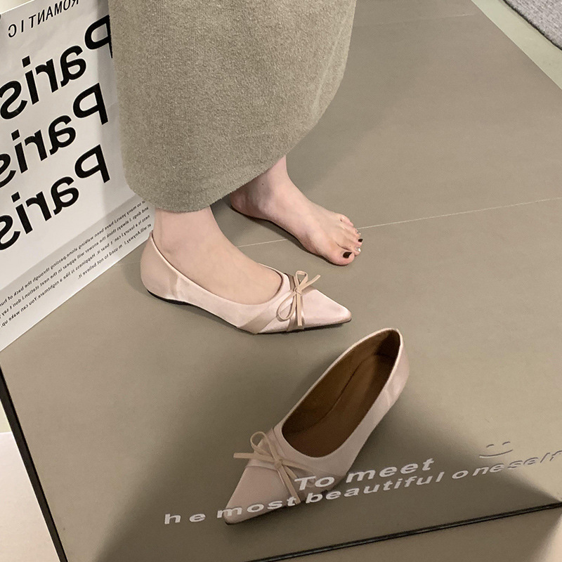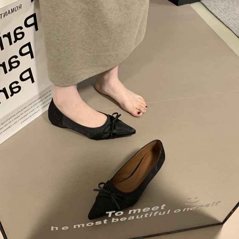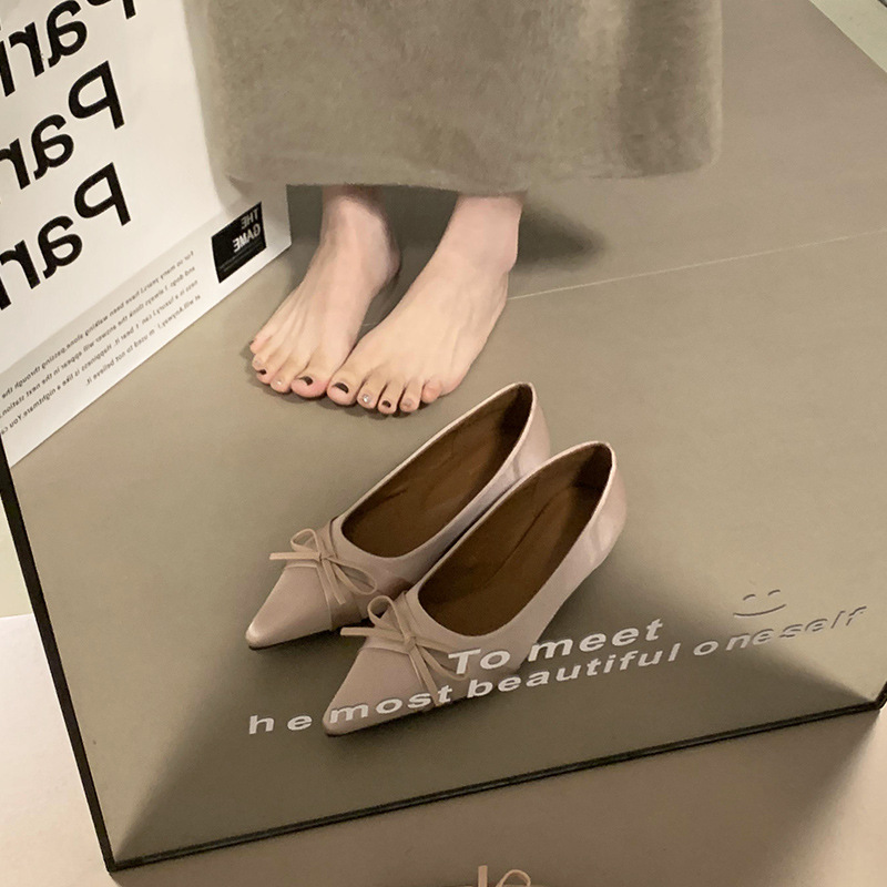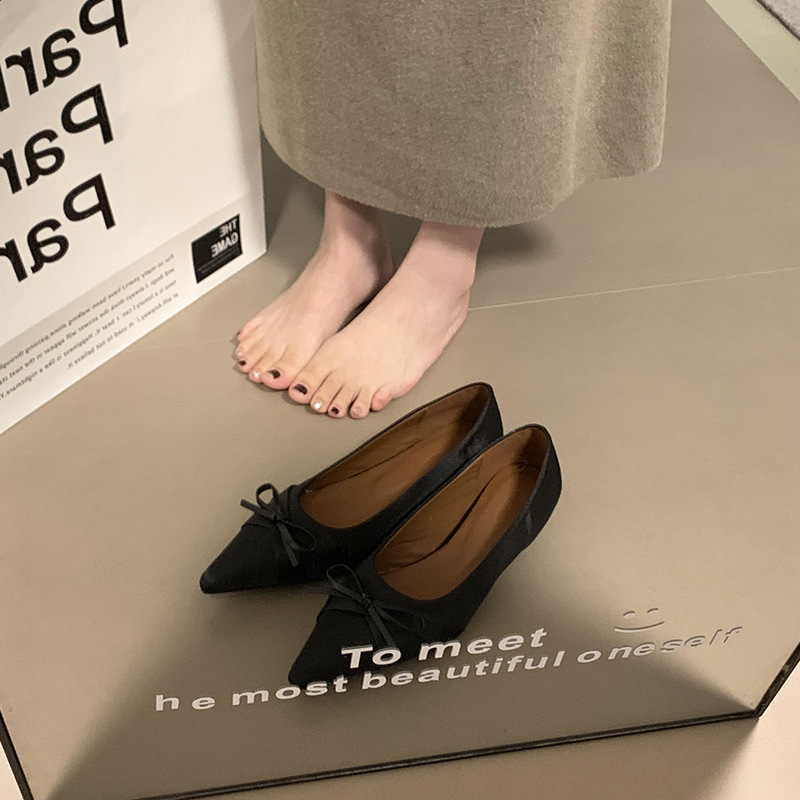 高级感内增高缎面尖头单鞋女新款气质低跟优雅瓢鞋