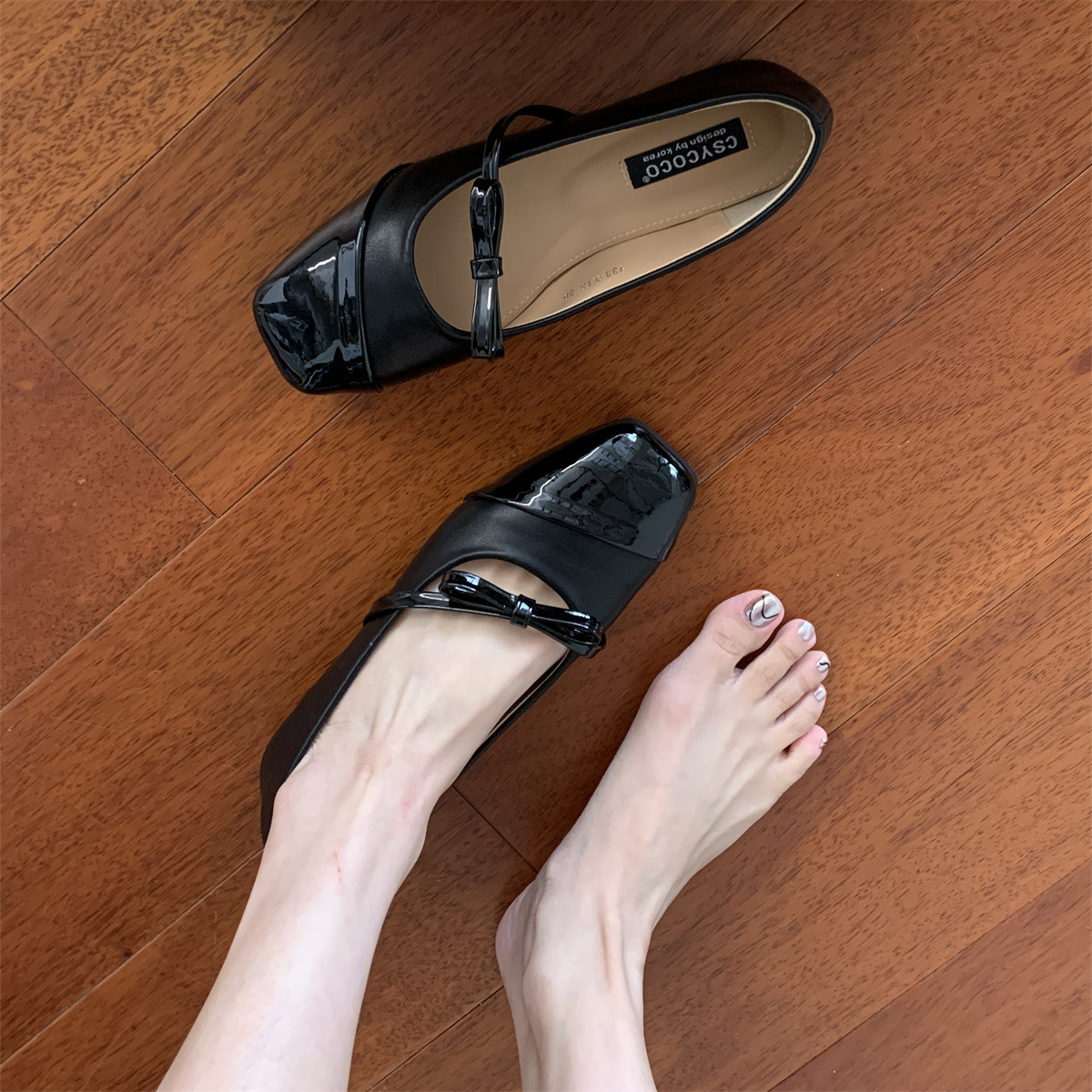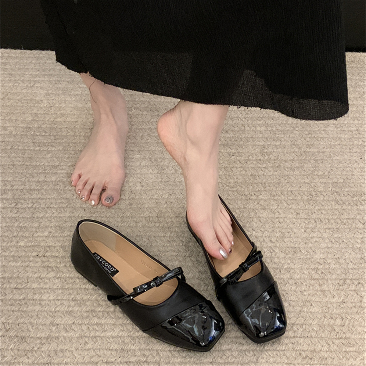 黑色玛丽珍鞋女鞋子年春秋新款蝴蝶结方头浅口软平底单鞋
