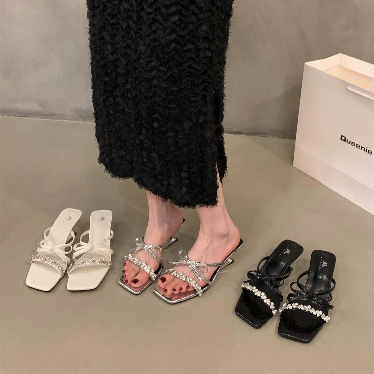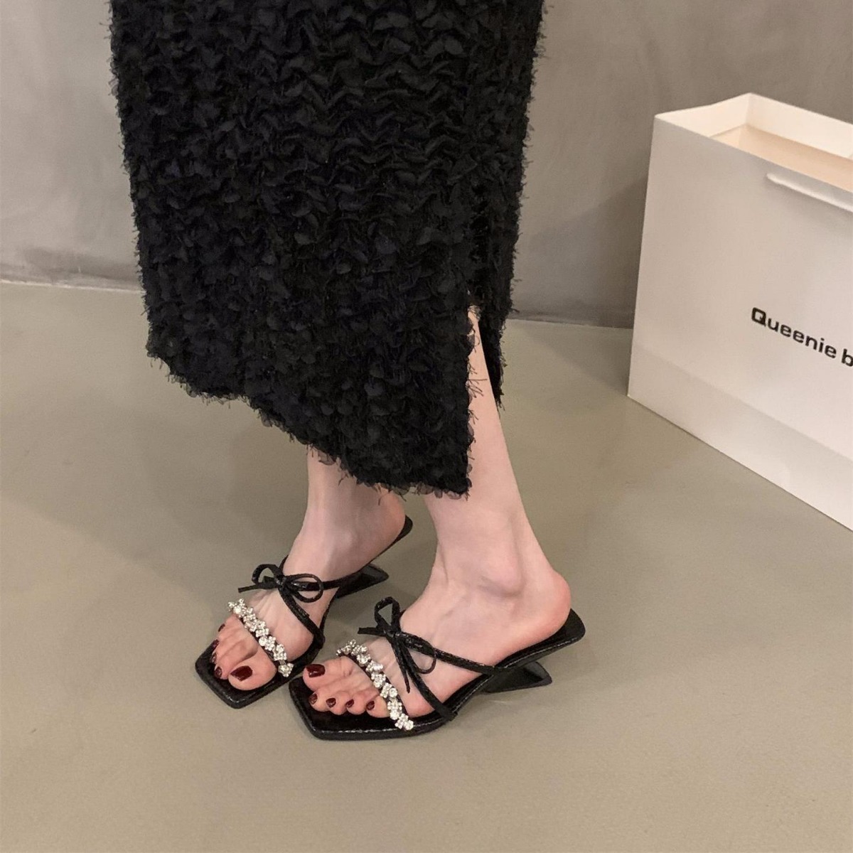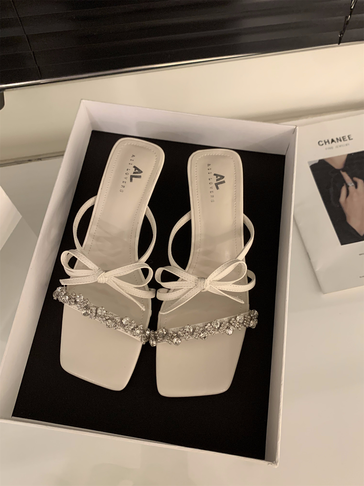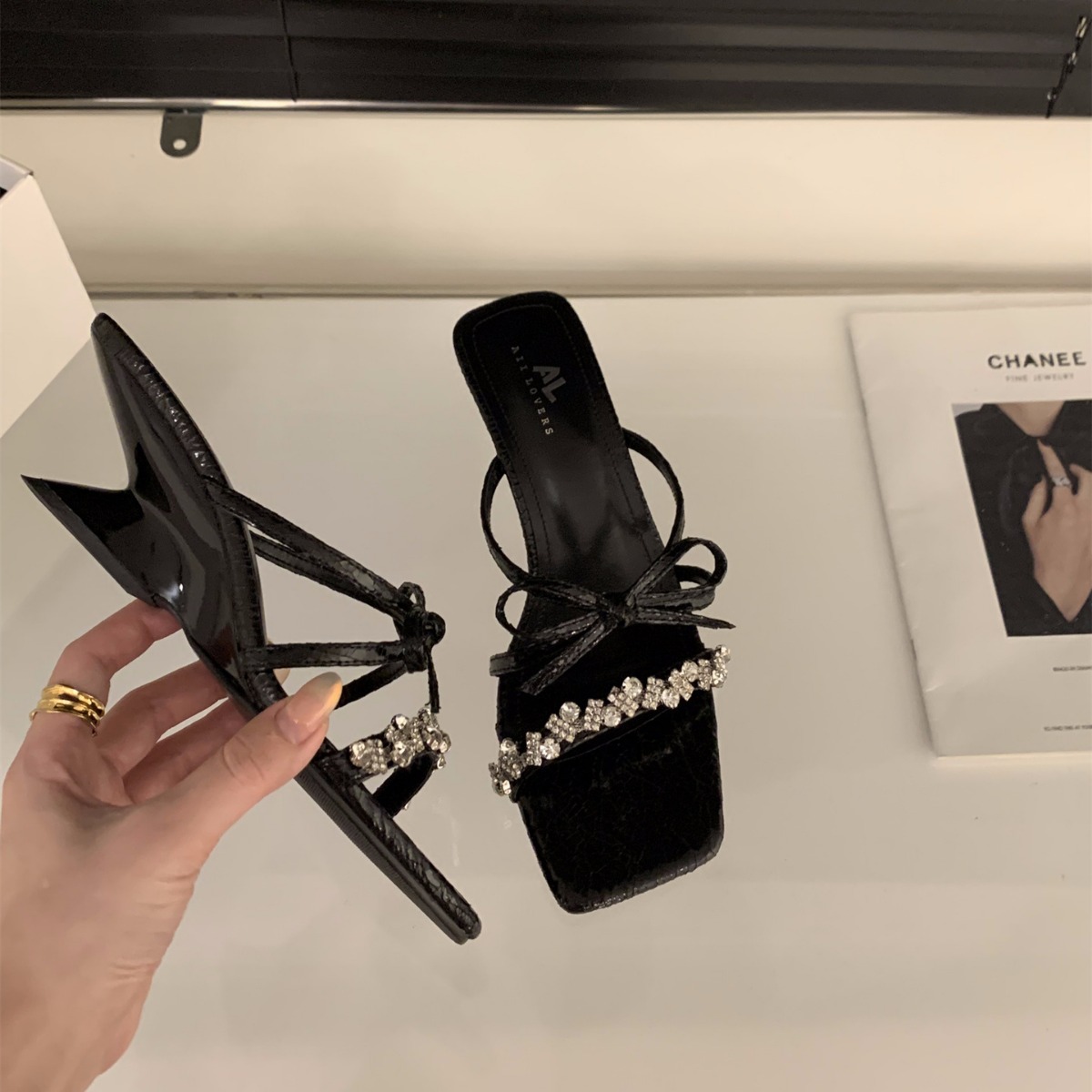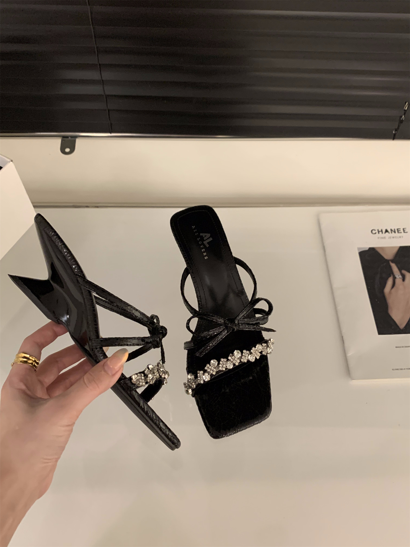 坡跟法式小凉拖鞋仙女鞋子新款夏季外穿配裙子中高跟水钻凉鞋