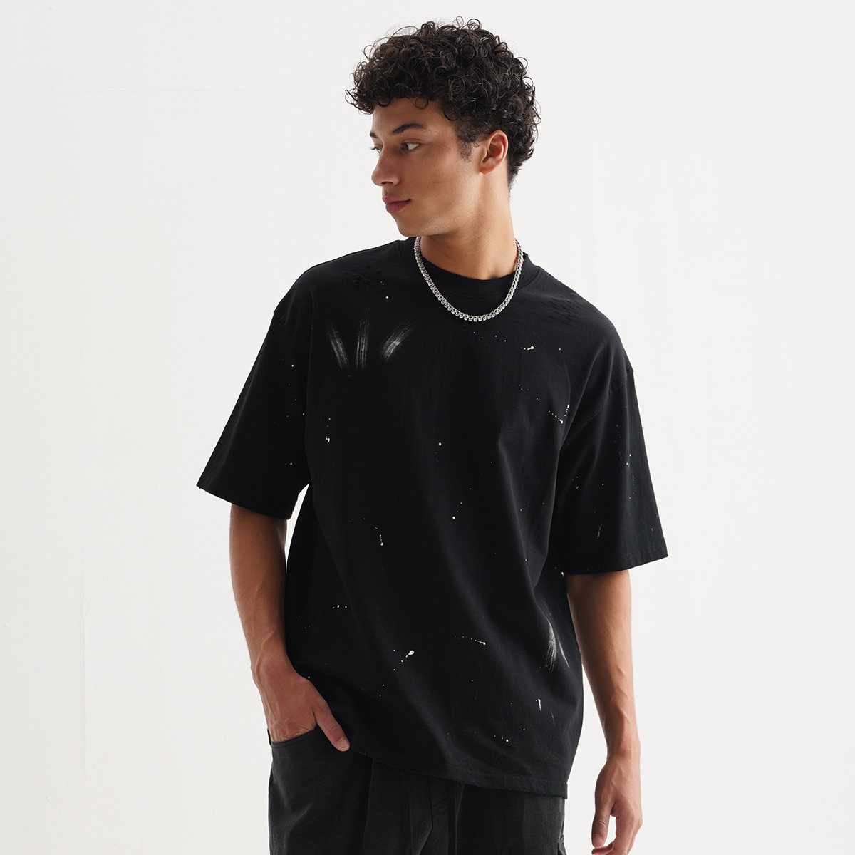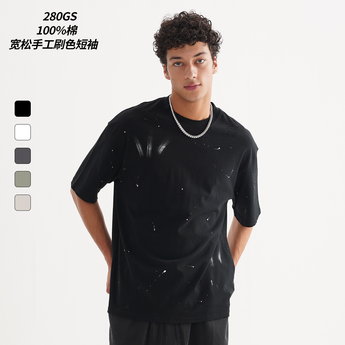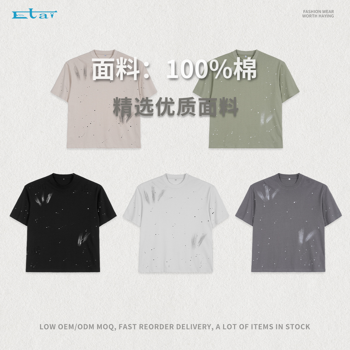 ETAI男装|280g重磅纯棉甩点短袖欧美潮流复古宽松型男士体恤衫