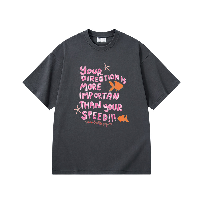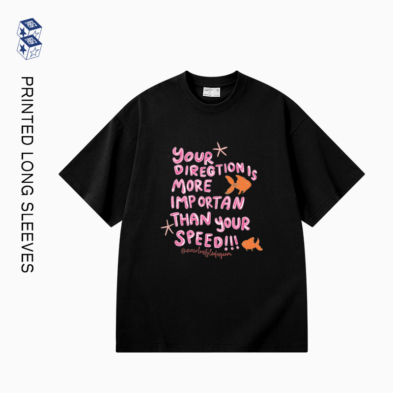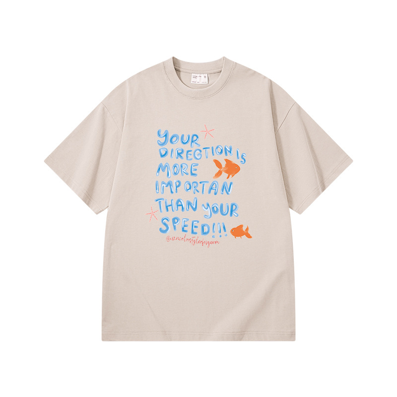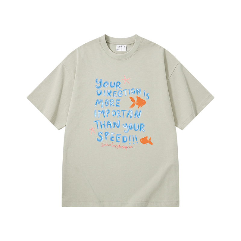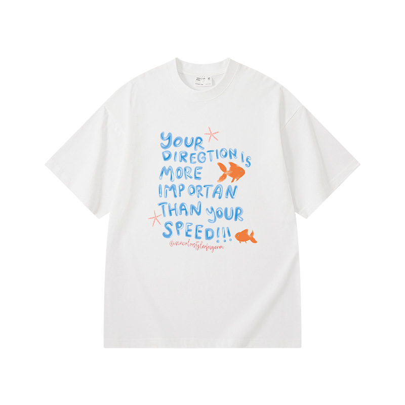 欧美宽松短袖t恤男夏季新品趣味小金鱼印花oversize圆领打底衫男