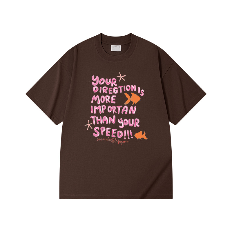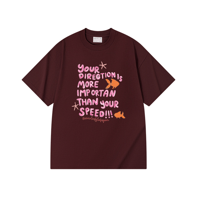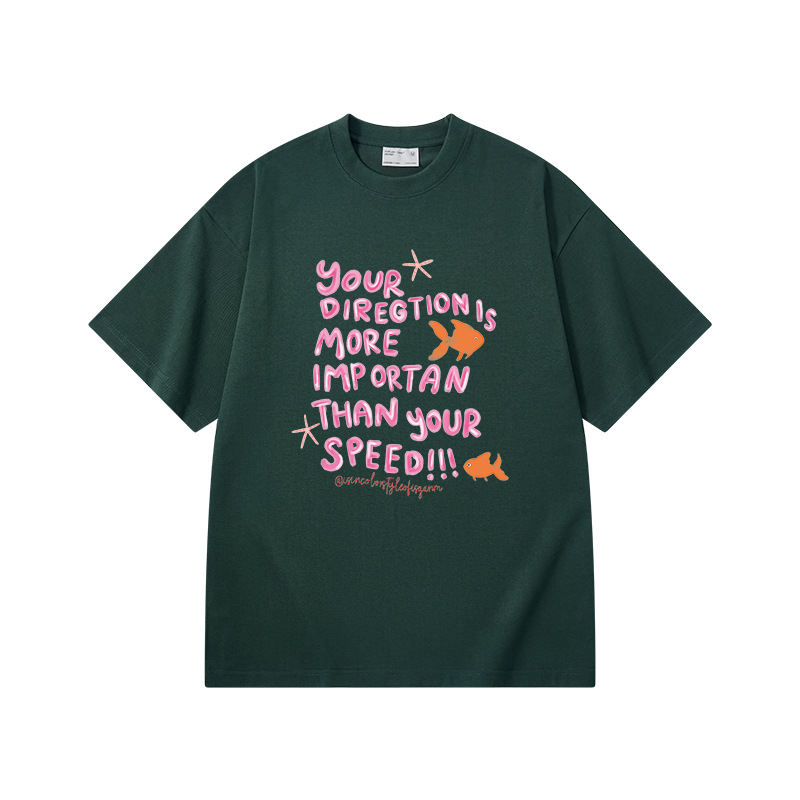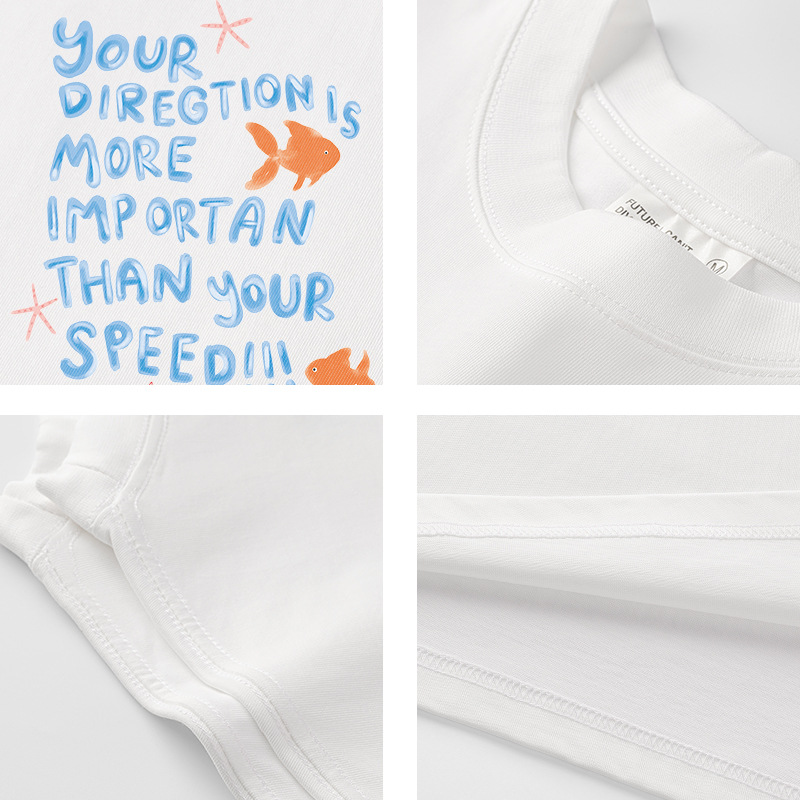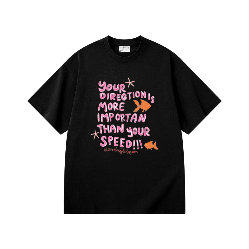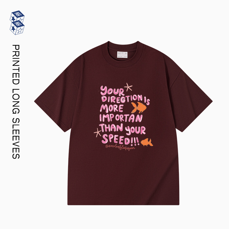 欧美宽松短袖t恤男夏季新品趣味小金鱼印花oversize圆领打底衫男