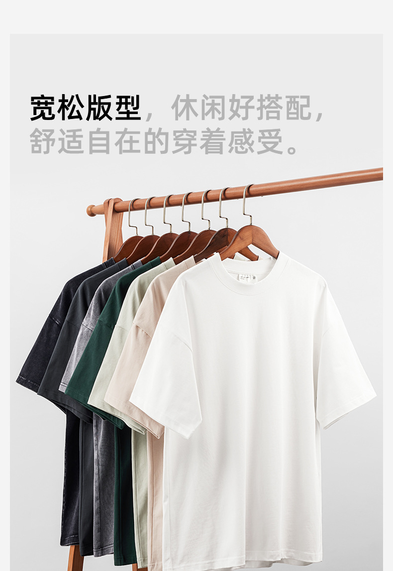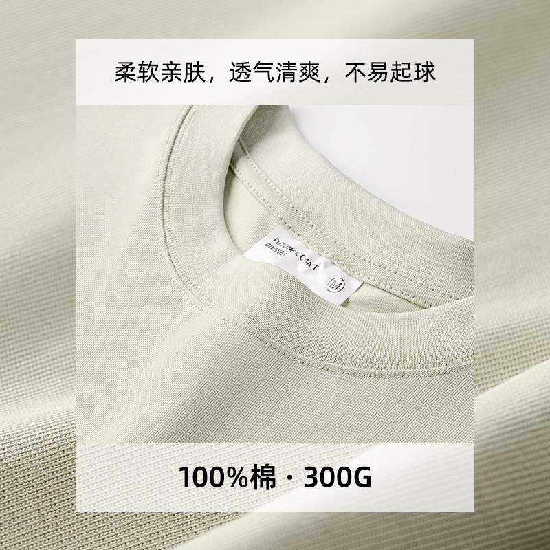 300g重磅加厚新疆棉短袖t恤男装夏季落肩潮牌纯色体恤打底衫衣服