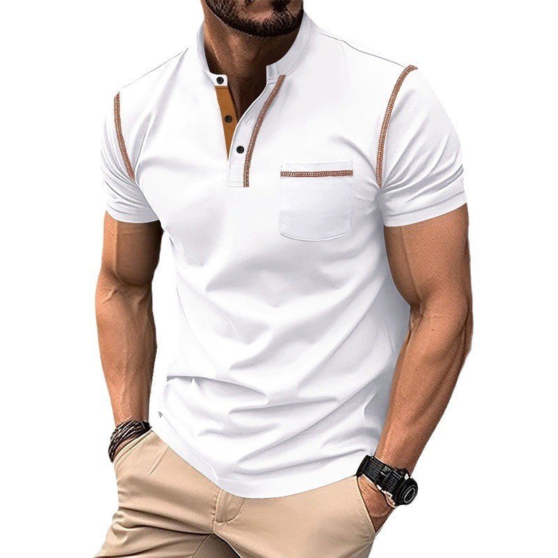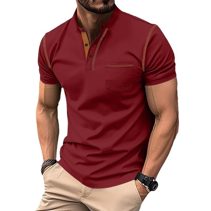 欧美男装短袖亨利衫外贸男士圆领t恤拼色体恤