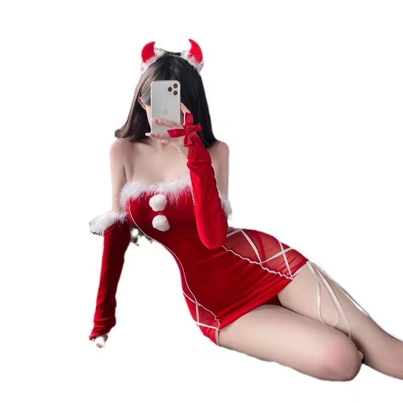 圣诞战袍女派对服性感圣诞装cos兔女郎连衣裙套装