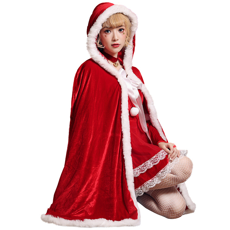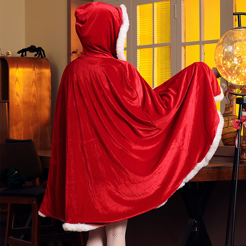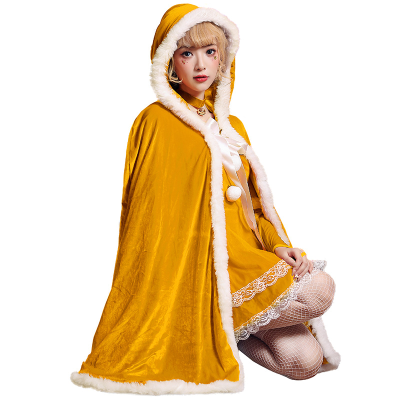 服饰圣诞节兔女郎战袍 新款黄色红色派对聚会圣诞女王披风